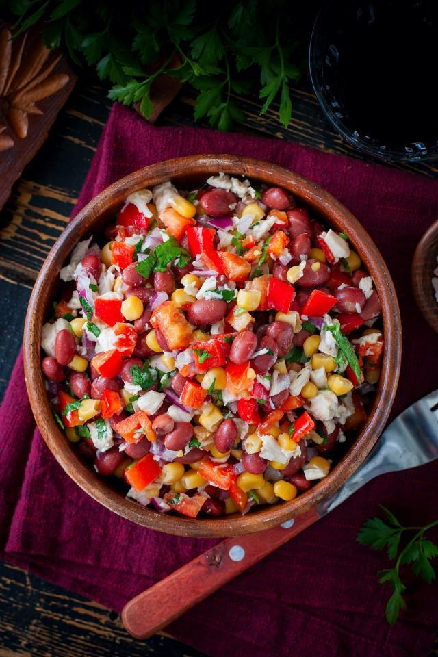 Bright and fragrant, with a rich composition! Salad with canned red beans and chicken is simple but looks colorful. Its composition will appeal to both men and women. It can be prepared for dinner and served to guests. All ingredients are available and affordable.