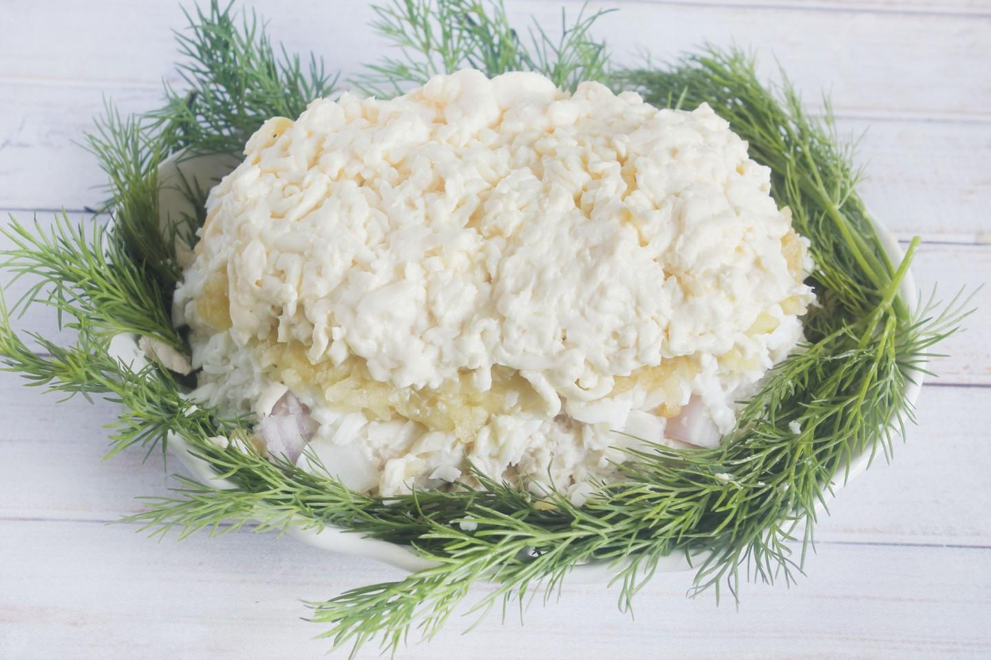 An elegant salad every day and for a holiday table. Turtle salad with smoked chicken and walnuts turns out elegant and appetizing — all the ingredients complement each other perfectly, creating the excellent taste of the dish. And you can make it not in the shape of a turtle or even a puff for every day!