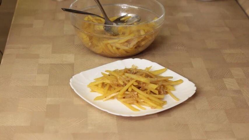 An unusual version of al dente potatoes, with light cheese. A simple recipe for Korean potato salad with an original taste. This Korean salad is very easy to prepare and can be served warm or cold, as a side dish or on its own.