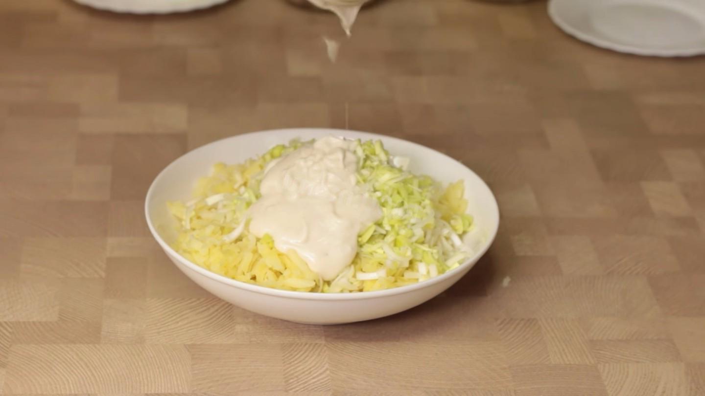 Fast, tasty. A great holiday appetizer.. Everyone knows Mimosa salad. I donʼt like canned fish except for caviar and cod liver. I really like this salad. As a dressing, you can use mayonnaise or sour cream with mustard, whichever is more to your taste.
