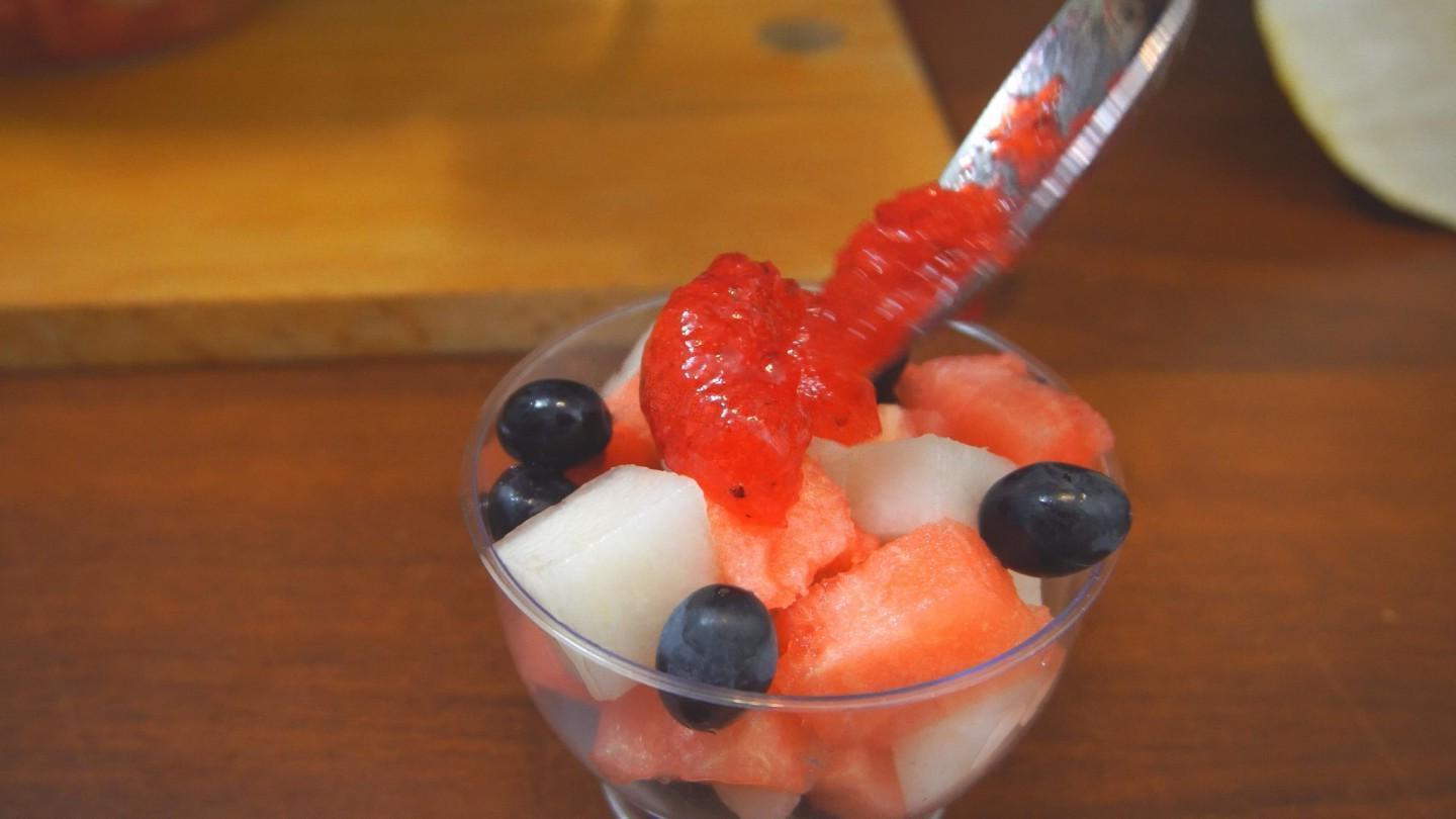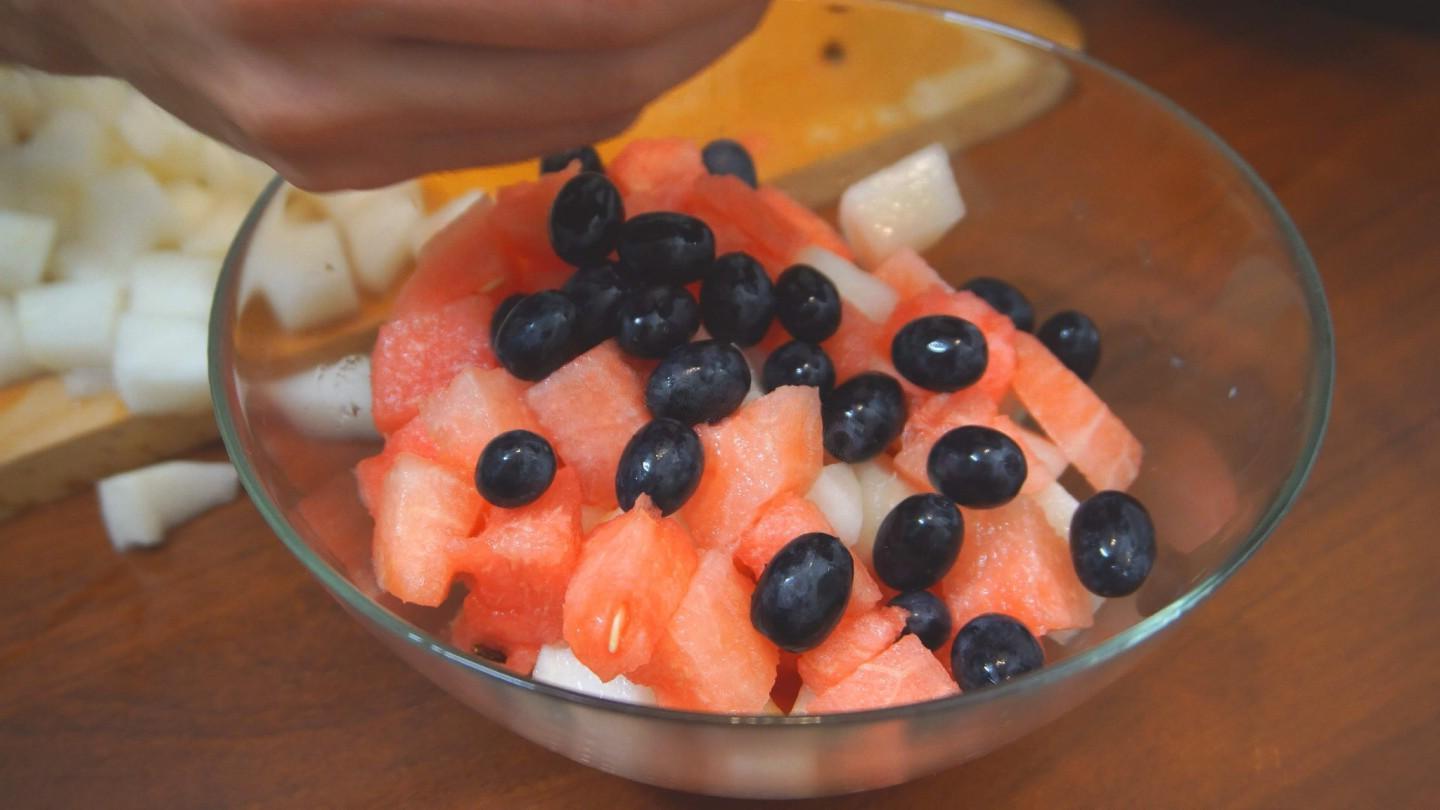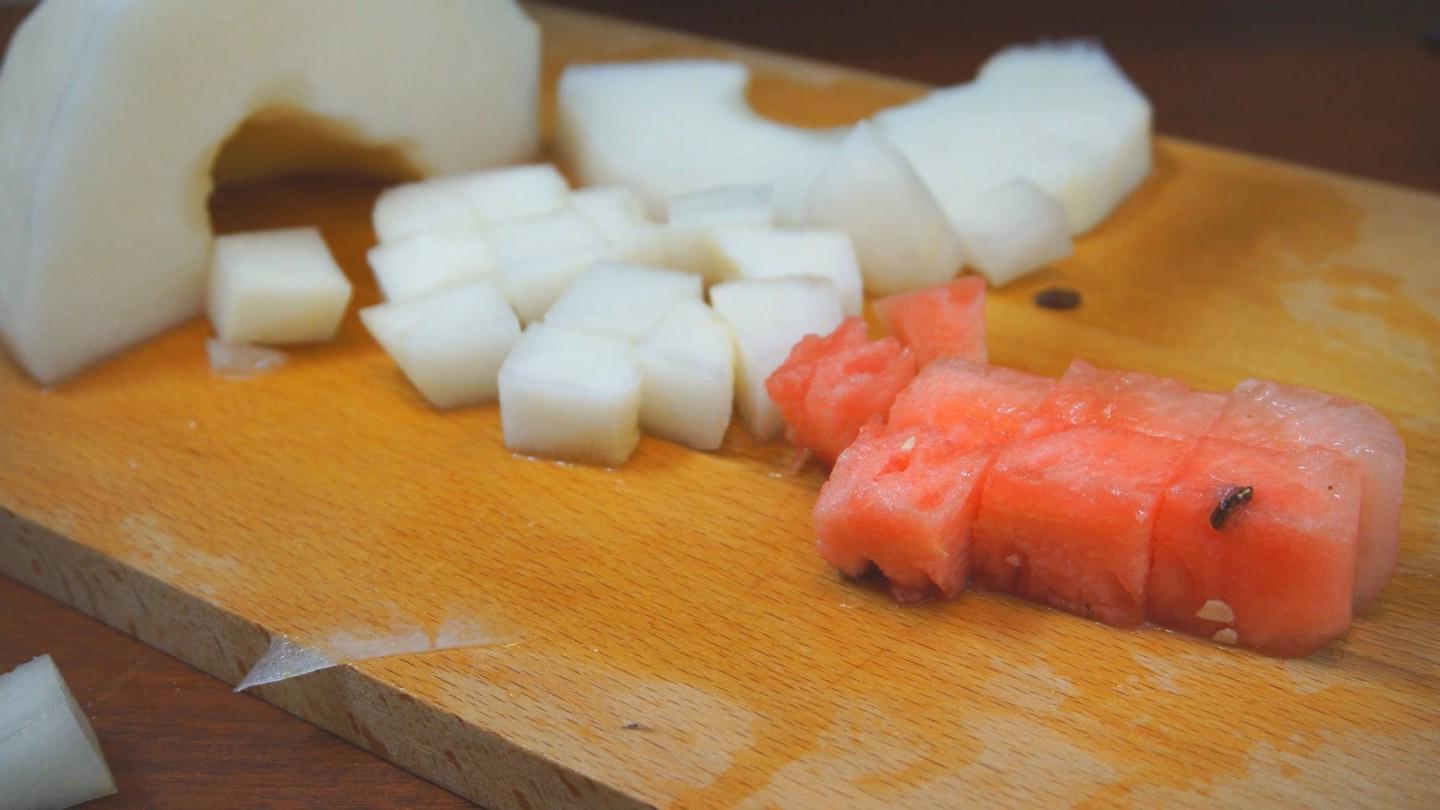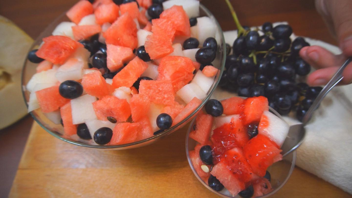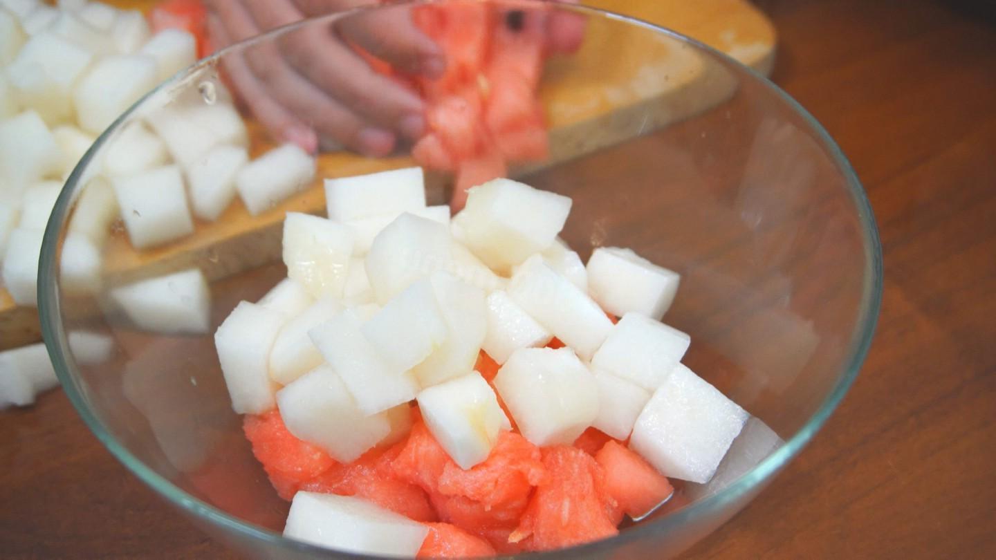 A very tasty fruit salad for the holiday table for children! A chic dessert of watermelon with melon, which is prepared simply, quickly and always very tasty!