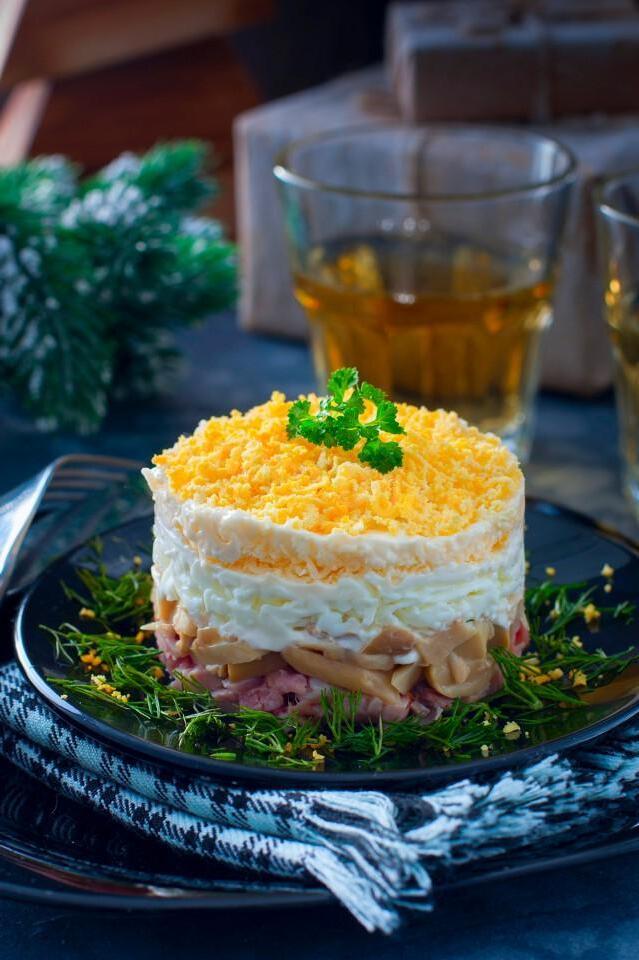 A quick layered salad for unexpected guests. A simple hearty salad made from ingredients that you can buy in advance for all sorts of unforeseen occasions, such as the arrival of unexpected guests. Itʼs easy and quick to prepare. The ingredients are accessible and harmonious with each other. One of those salads that goes perfectly with potatoes — boiled, baked or fried.