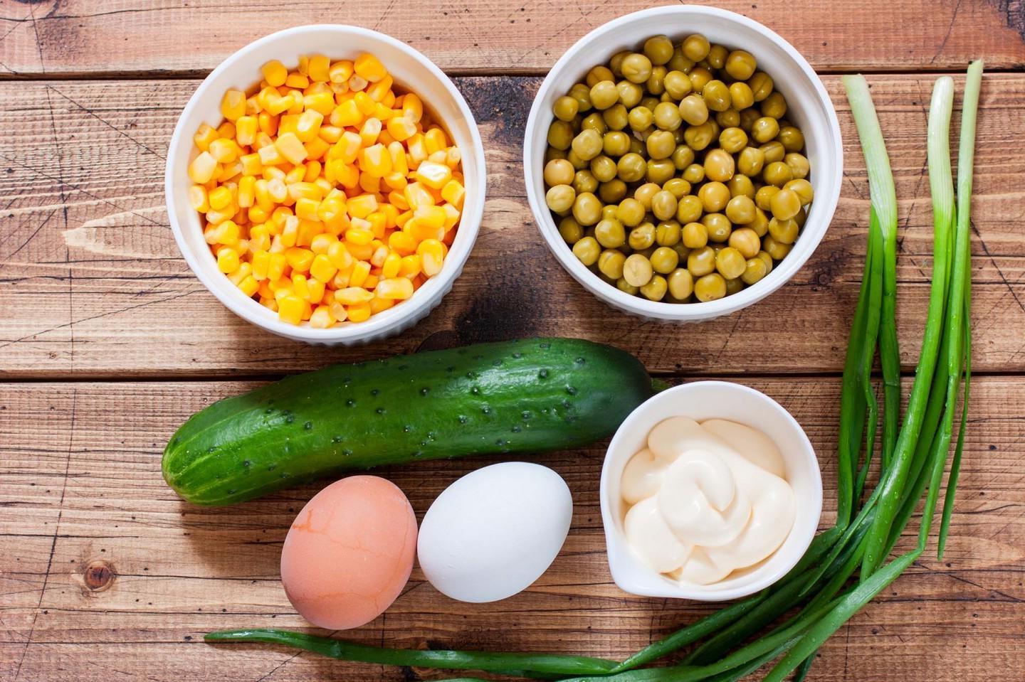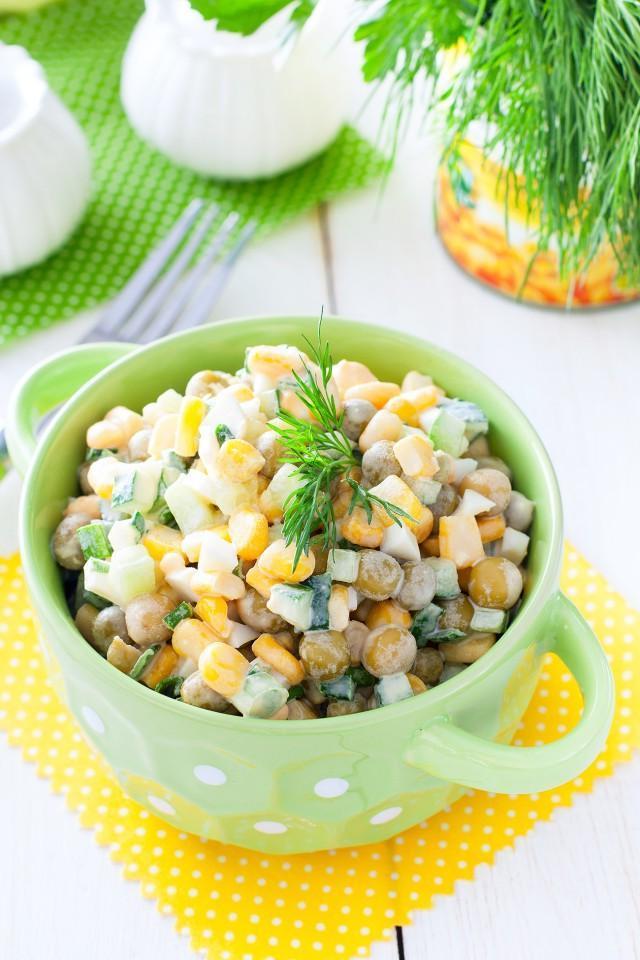 Bright, beautiful, fresh, light, for every day! Salad with peas, corn and eggs is unusual in that both corn and peas are added to it at once, although they are usually found separately. I thought it wouldn’t be tasty, but in vain — the ingredients complemented each other perfectly without overpowering the taste.