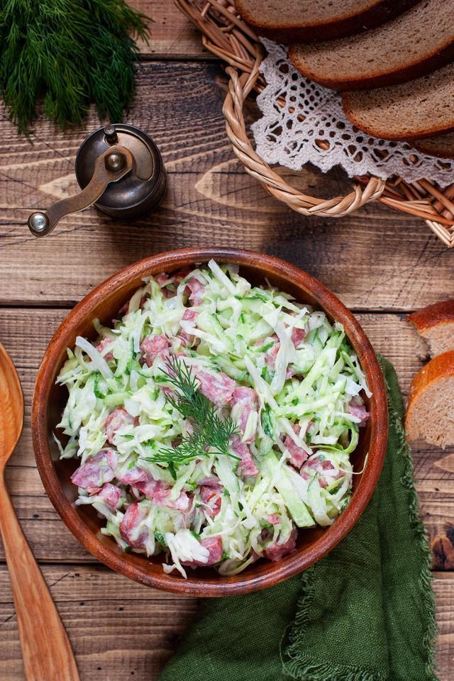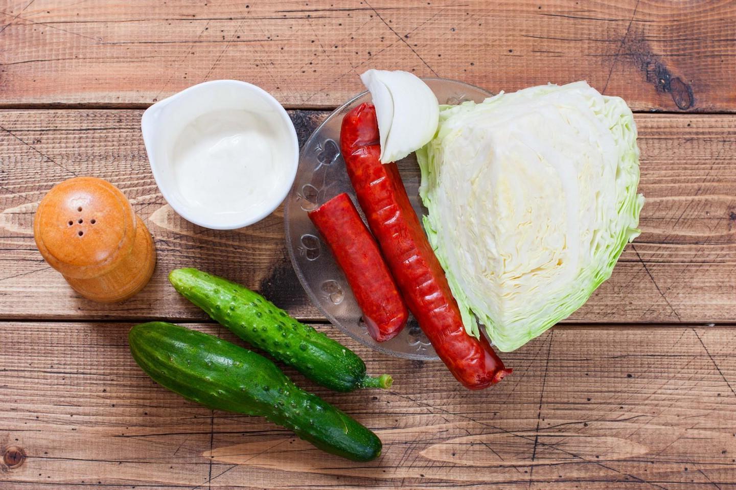 Elementary, juicy, fast, for every day! A salad with smoked sausage and fresh cucumber will always be a welcome guest on your table. It is very simple, even a child can do it. Cooking will not take much time, and the result will be very tasty, aromatic and satisfying.