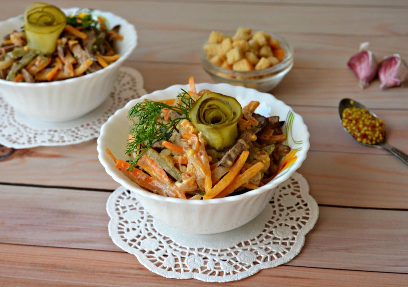 Nourishing, juicy and tender, for every day and holiday. Salad with liver, pickles and carrots is a simple salad made from available products. I have been preparing this salad for many years for almost every holiday, and on weekdays, often for dinner as an independent dish.