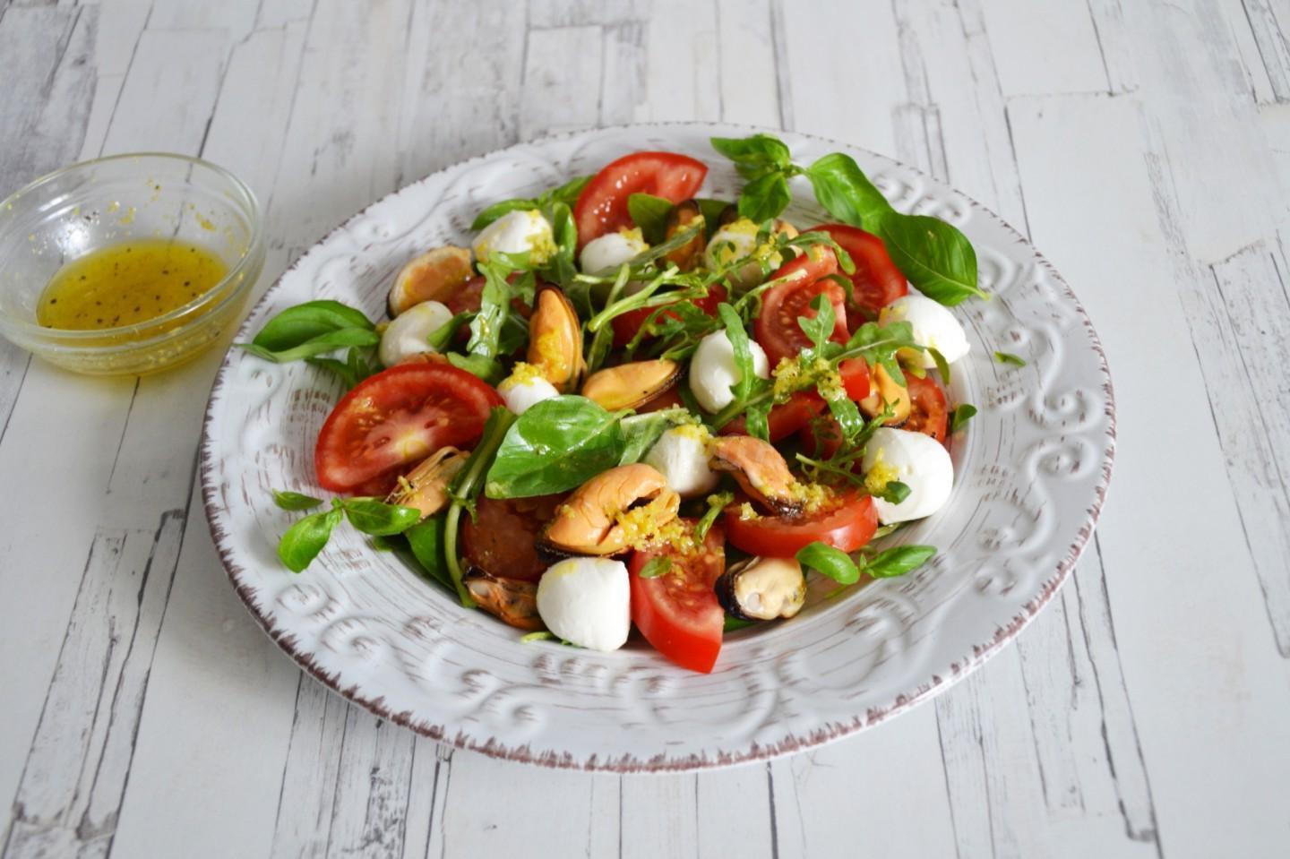 Original, spicy, light, without mayonnaise! Salad with mussels, mozzarella and arugula is a version of Italian caprese with the addition of seafood. Mussels are good because they have no carbohydrates. But there is a lot of healthy protein. Therefore, such a salad is practically harmless to the figure.