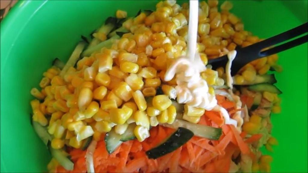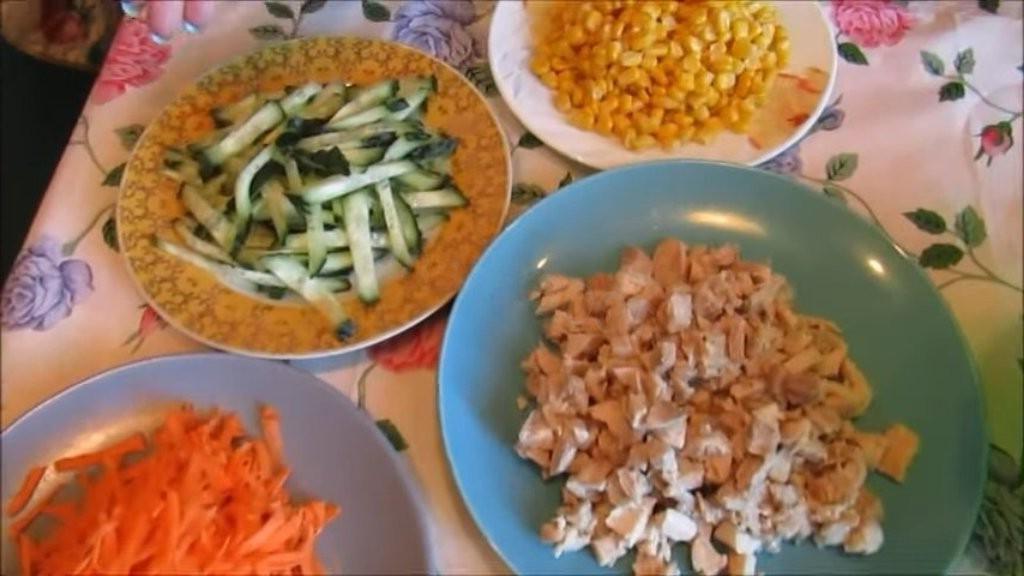 Quick to prepare and satisfying salad with chicken and ham. A hearty salad with chicken, ham and vegetables is a godsend for those times when you want to eat tasty food. It can be prepared for the dinner table, and you can easily put it on the holiday table.
