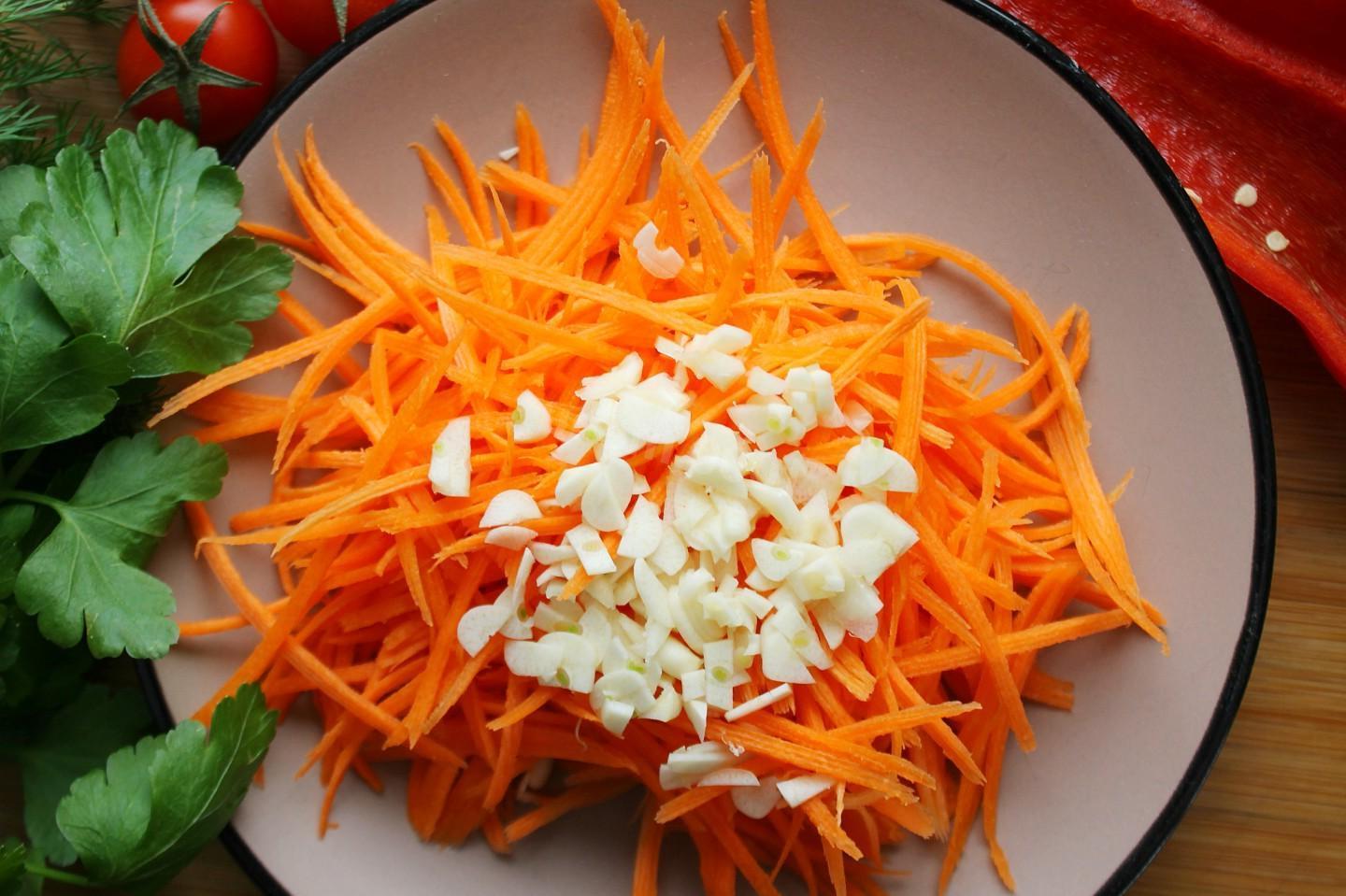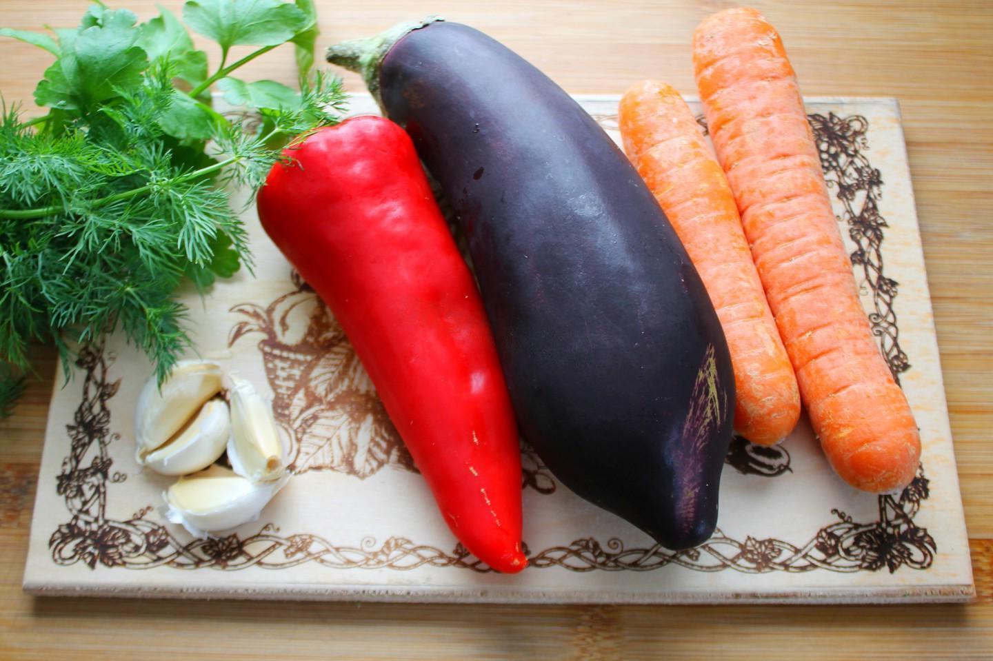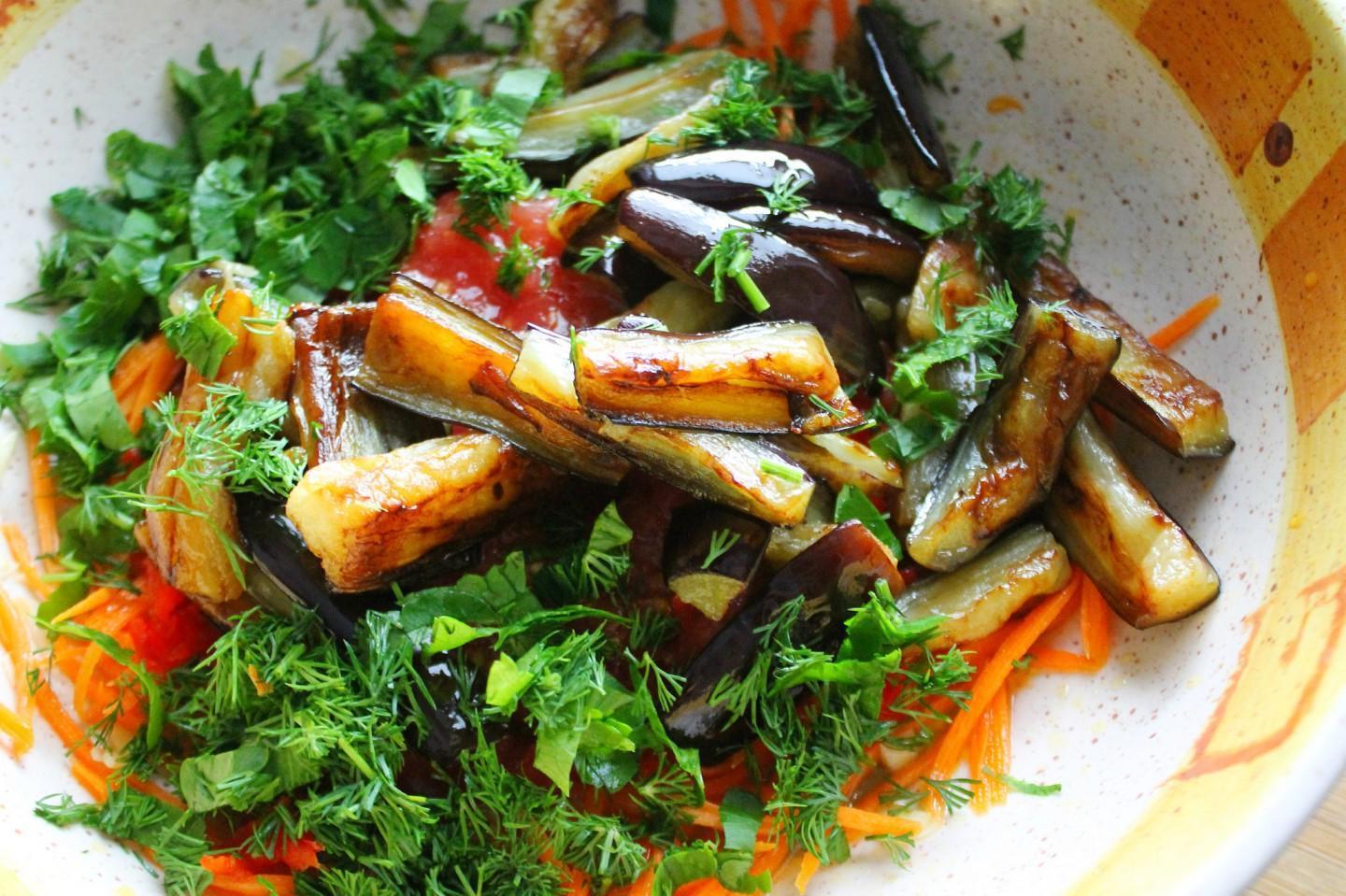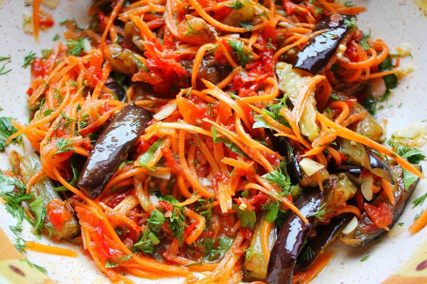 A savory and incredibly tasty snack — youʼll swallow your tongue! Do you like bright, juicy and rich salads? Then you should definitely try the eggplant, carrot and pepper salad! This salad appetizer goes perfectly with potatoes, meat, boiled rice, buckwheat, etc.