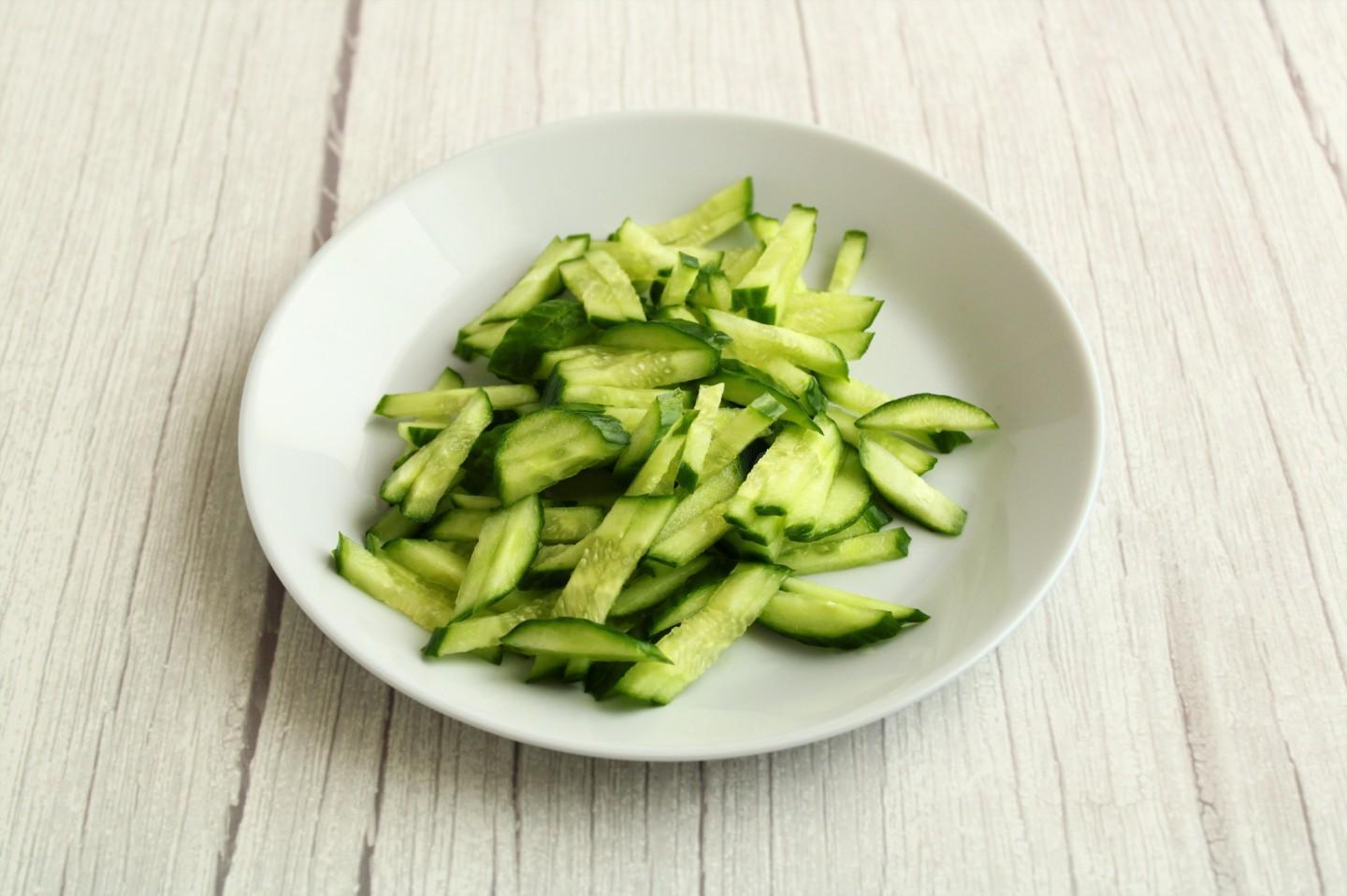 The salad can be supplemented with any ingredients. You can add different products to the main components of the salad according to your imagination and taste. This can be various fresh vegetables, olives, cheese, etc. This way the salad can be given variety and a new taste. This option is just one of many.
