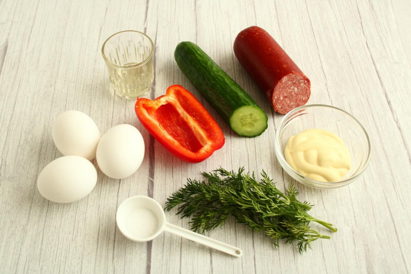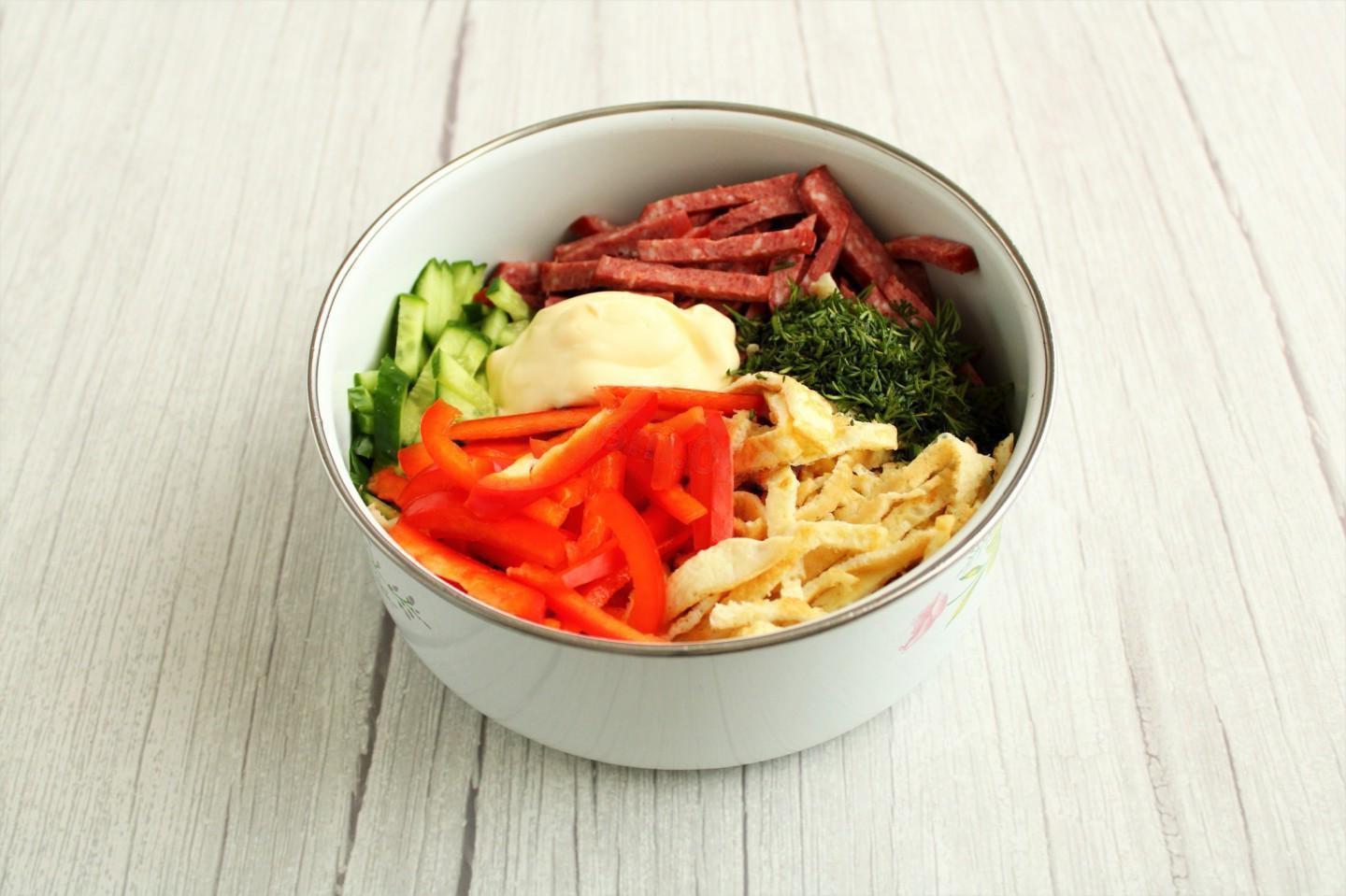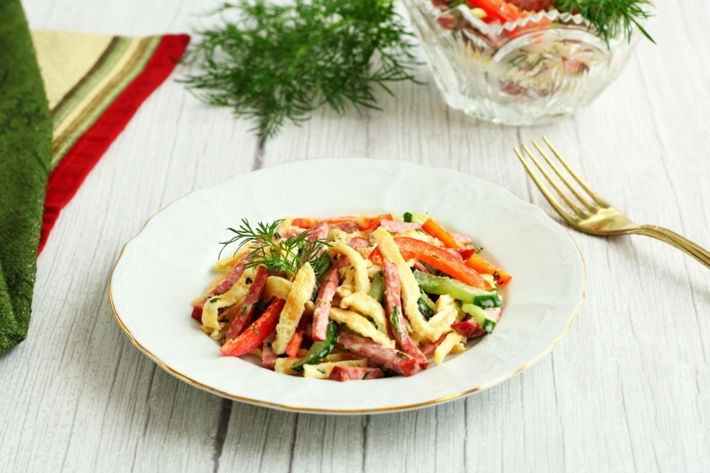 Egg Pancake & Smoked Sausage Salad