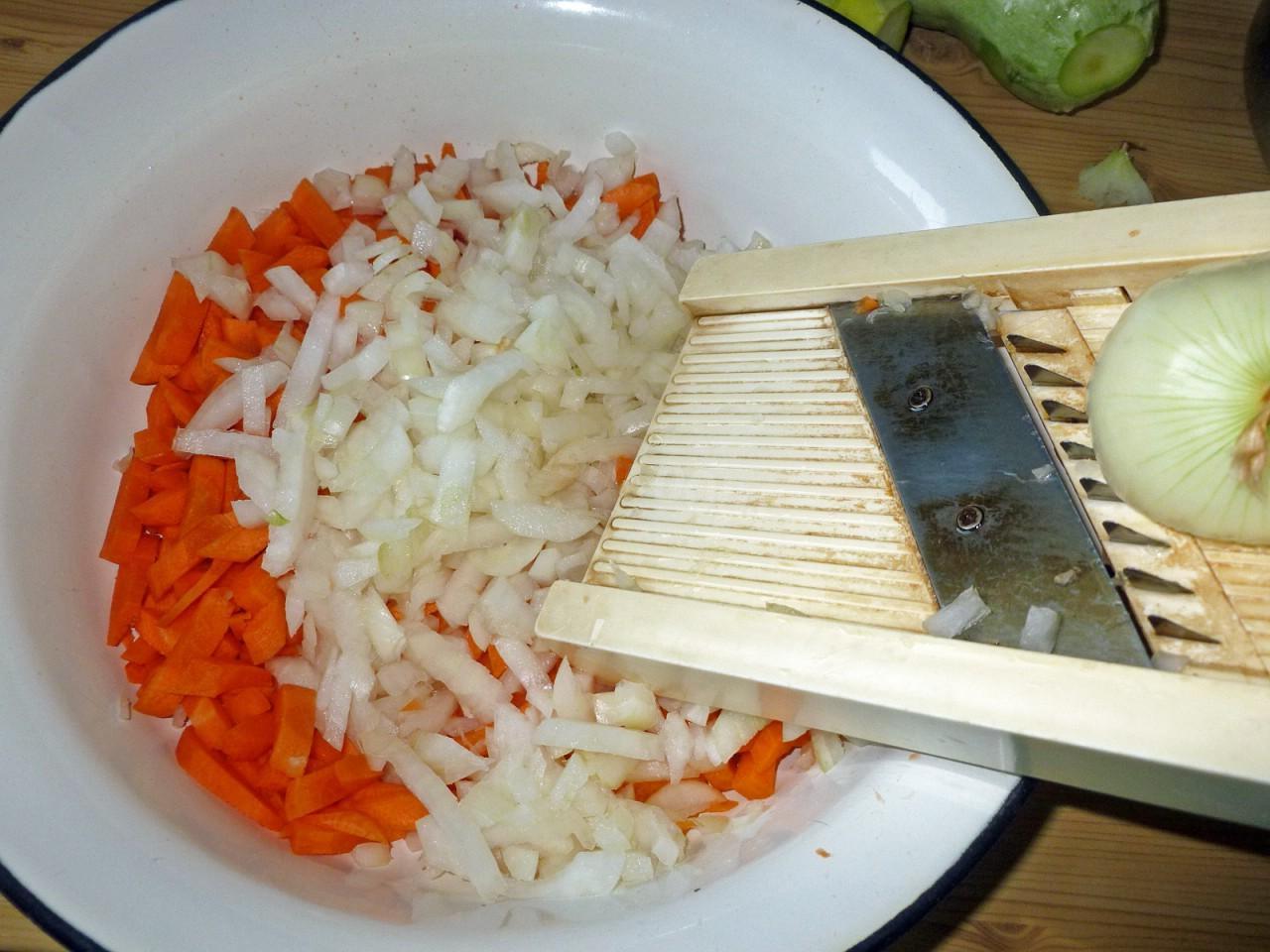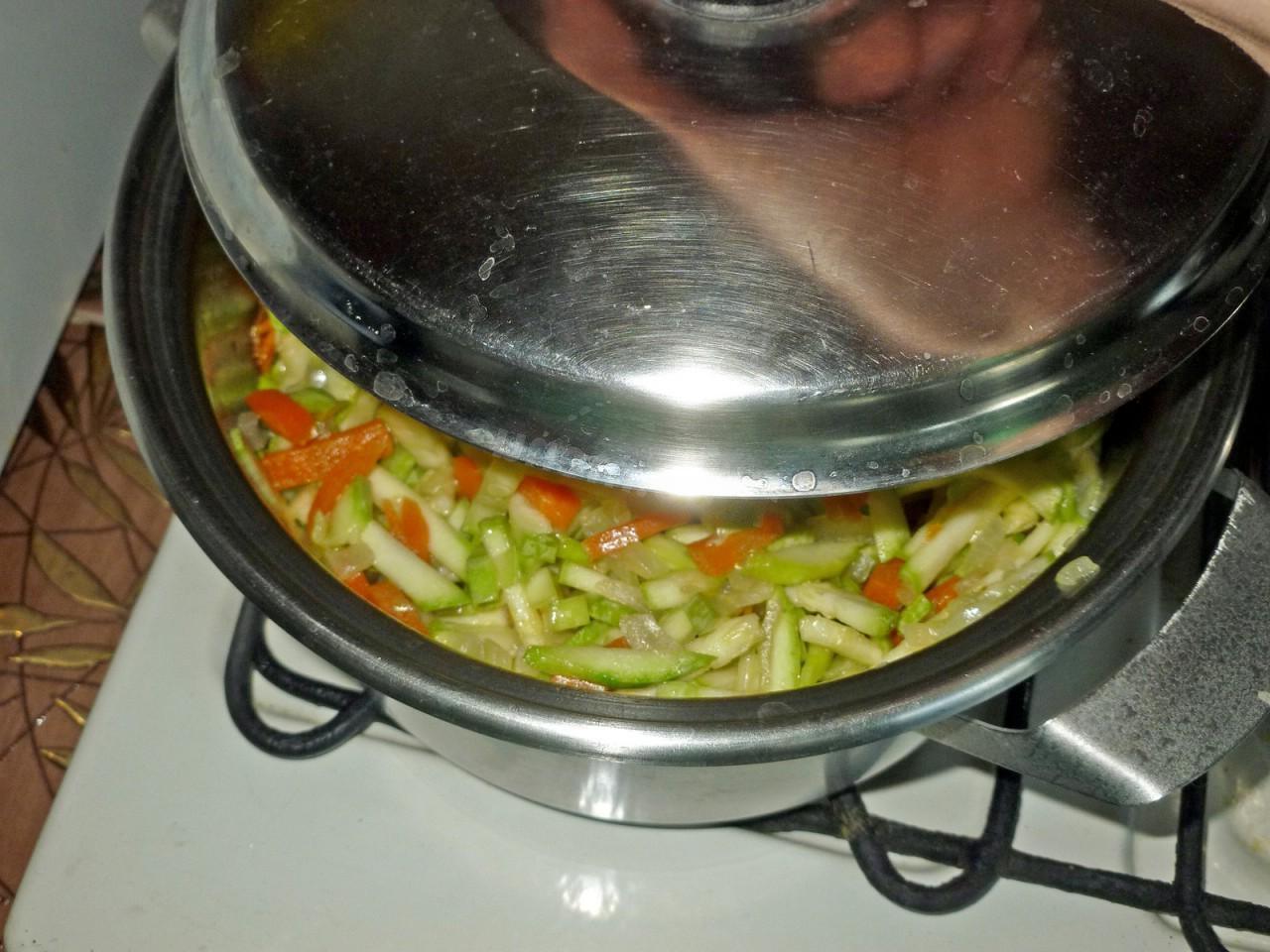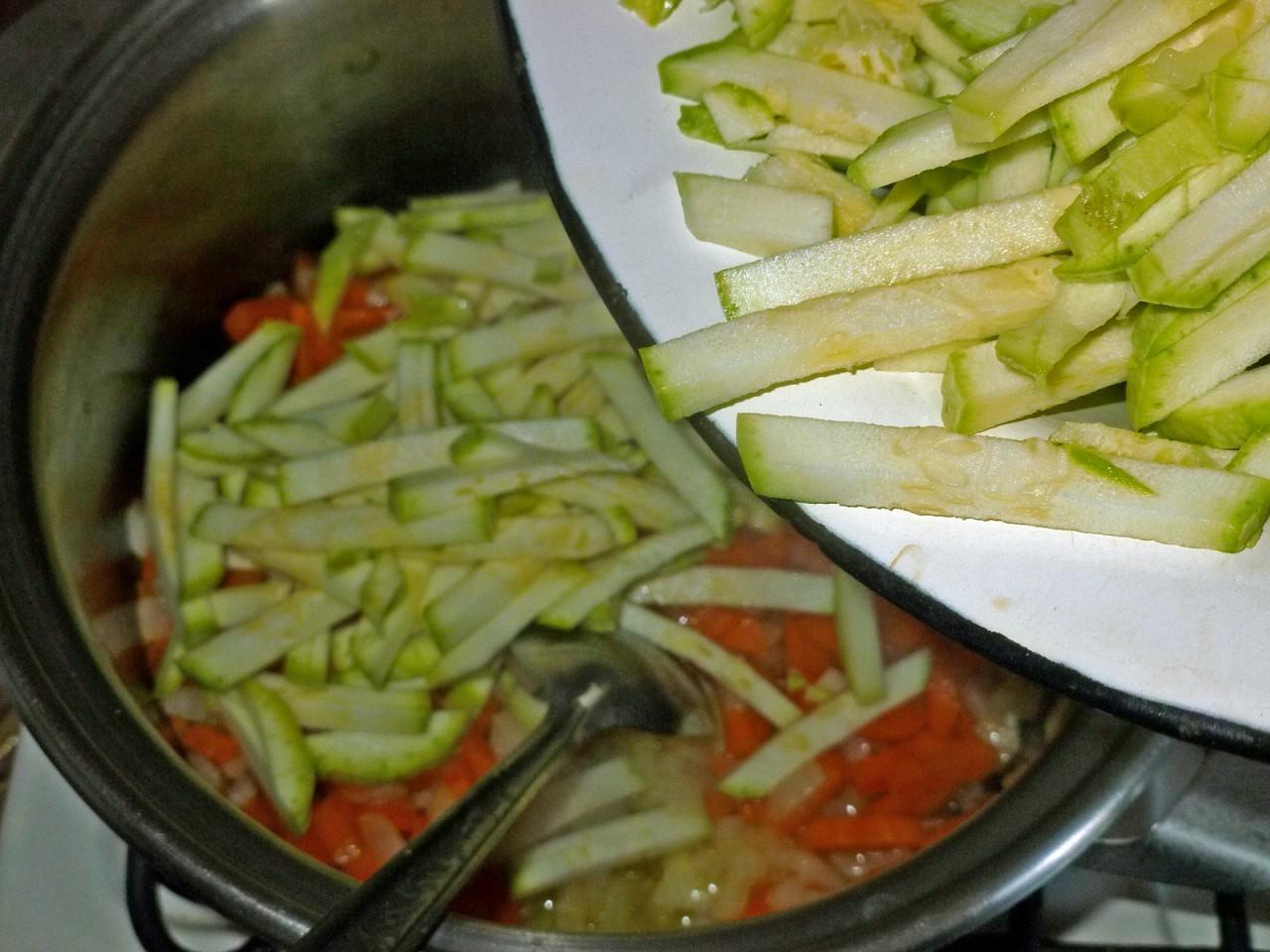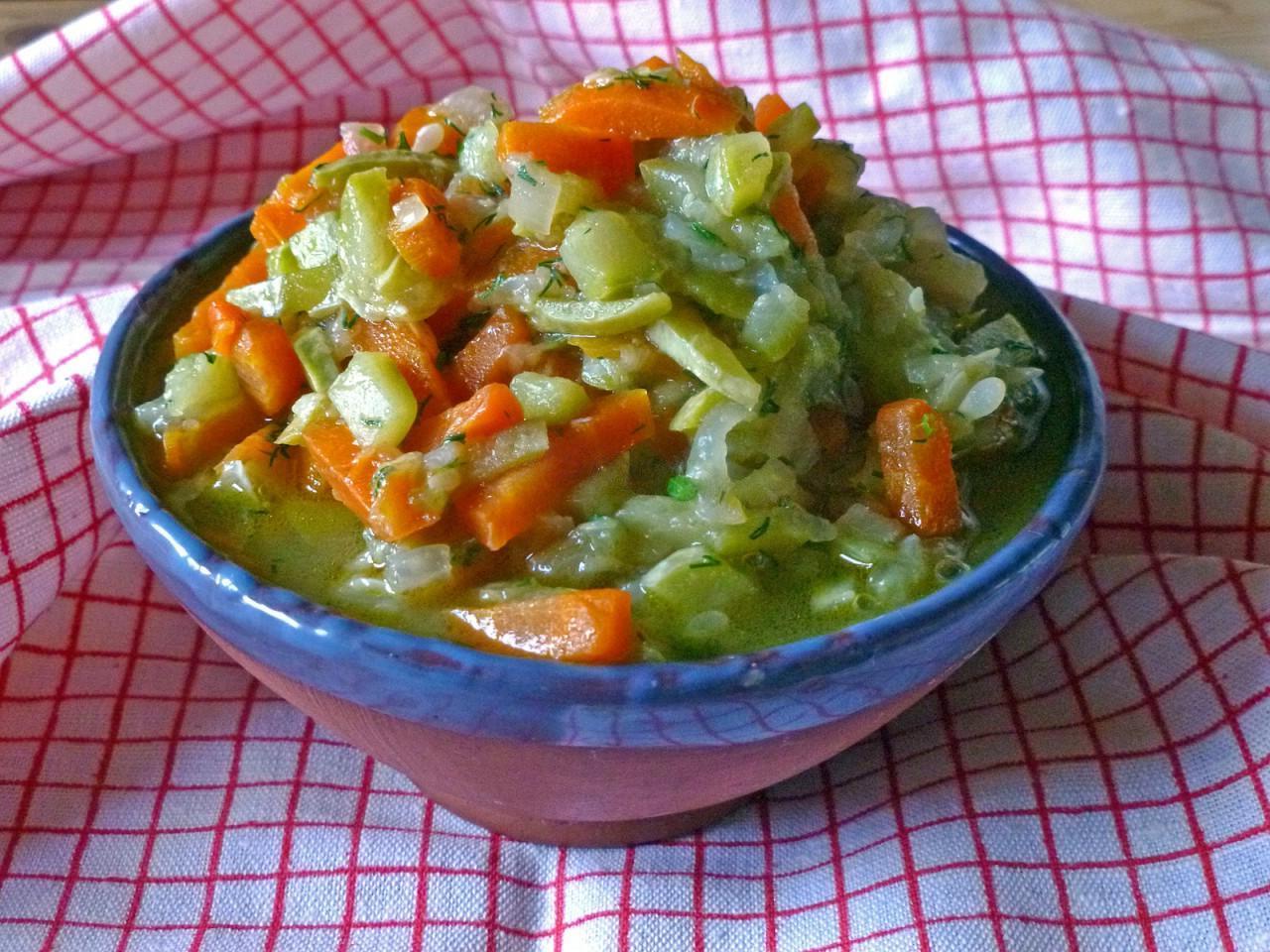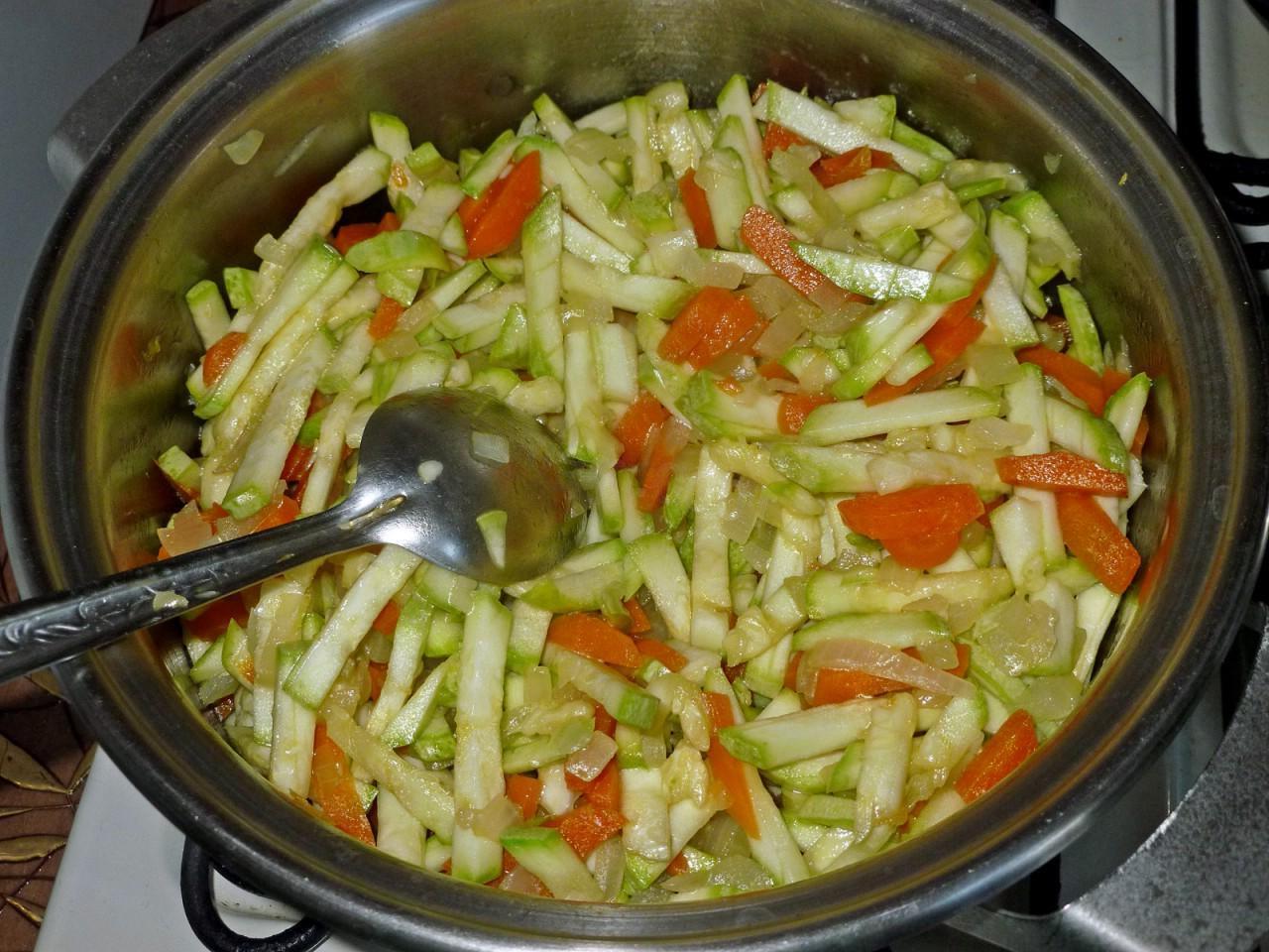 Lenten vegetable dish of zucchini, onions and carrots. Zucchini stewed in a pan with carrots in vegetable oil, suitable for any side dish. Recipe for Lenten and vegetarian menus.
