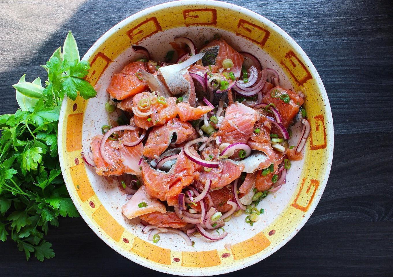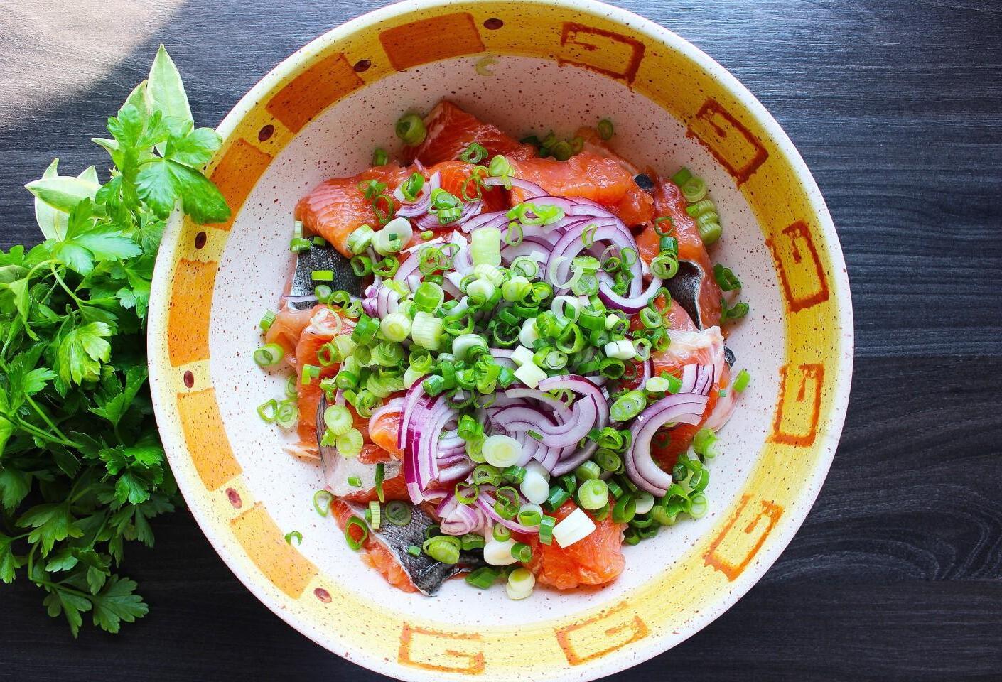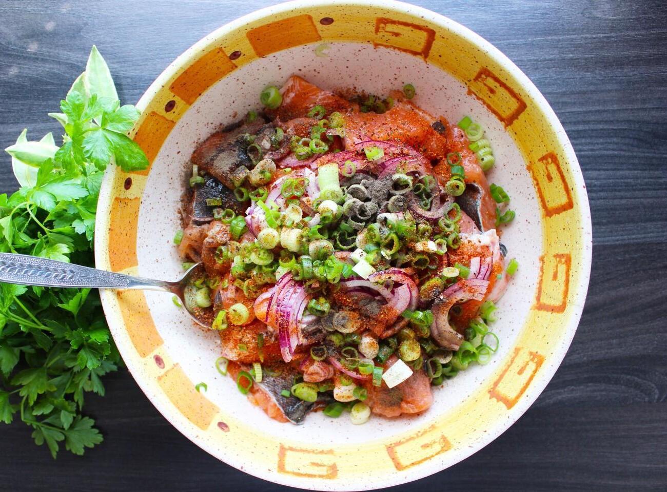 Stunningly tender, aromatic fish on your table! Trout heh is a delicious original fish and onion salad that is very easy and simple to prepare. Incredibly appetizing and looks beautiful on the holiday table. You can add hot paprika to taste, it will turn out piquant.