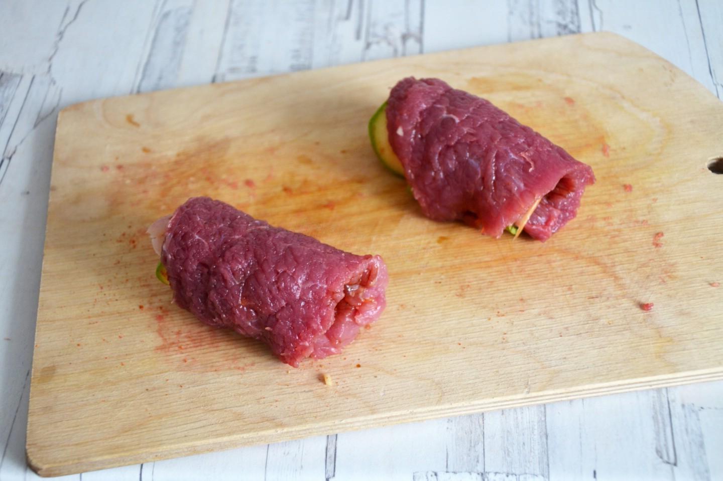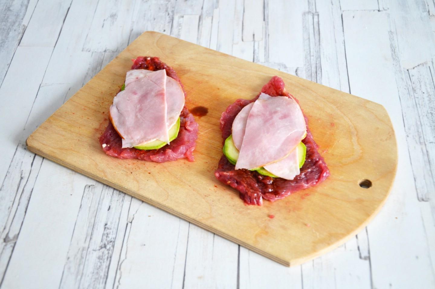 Zucchini and Ham Stuffed Beef Rolls