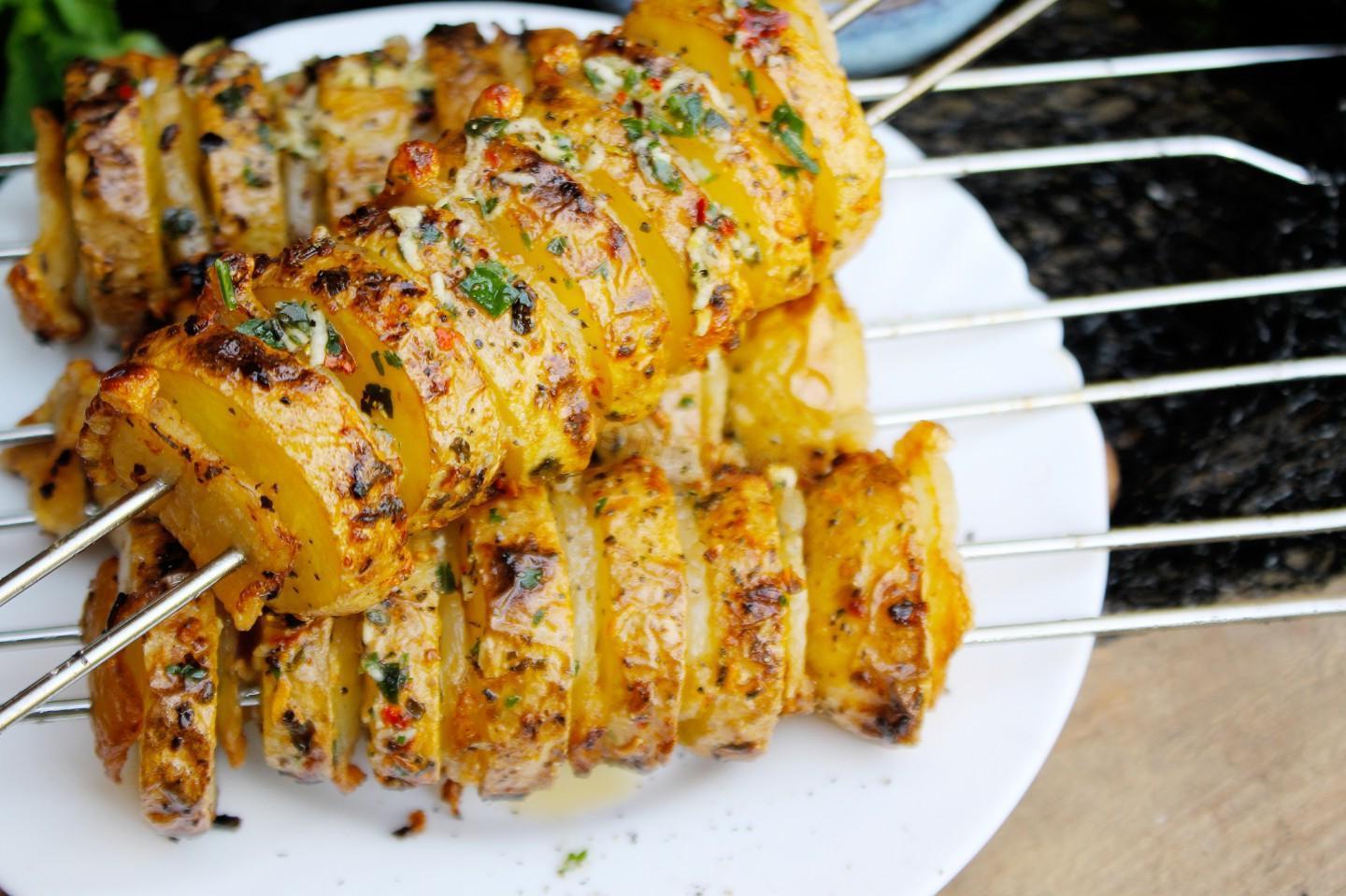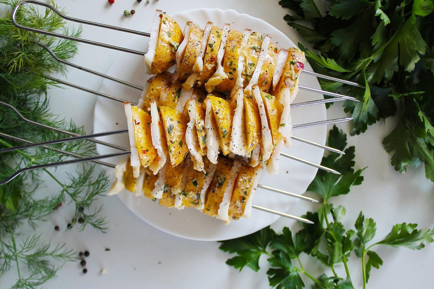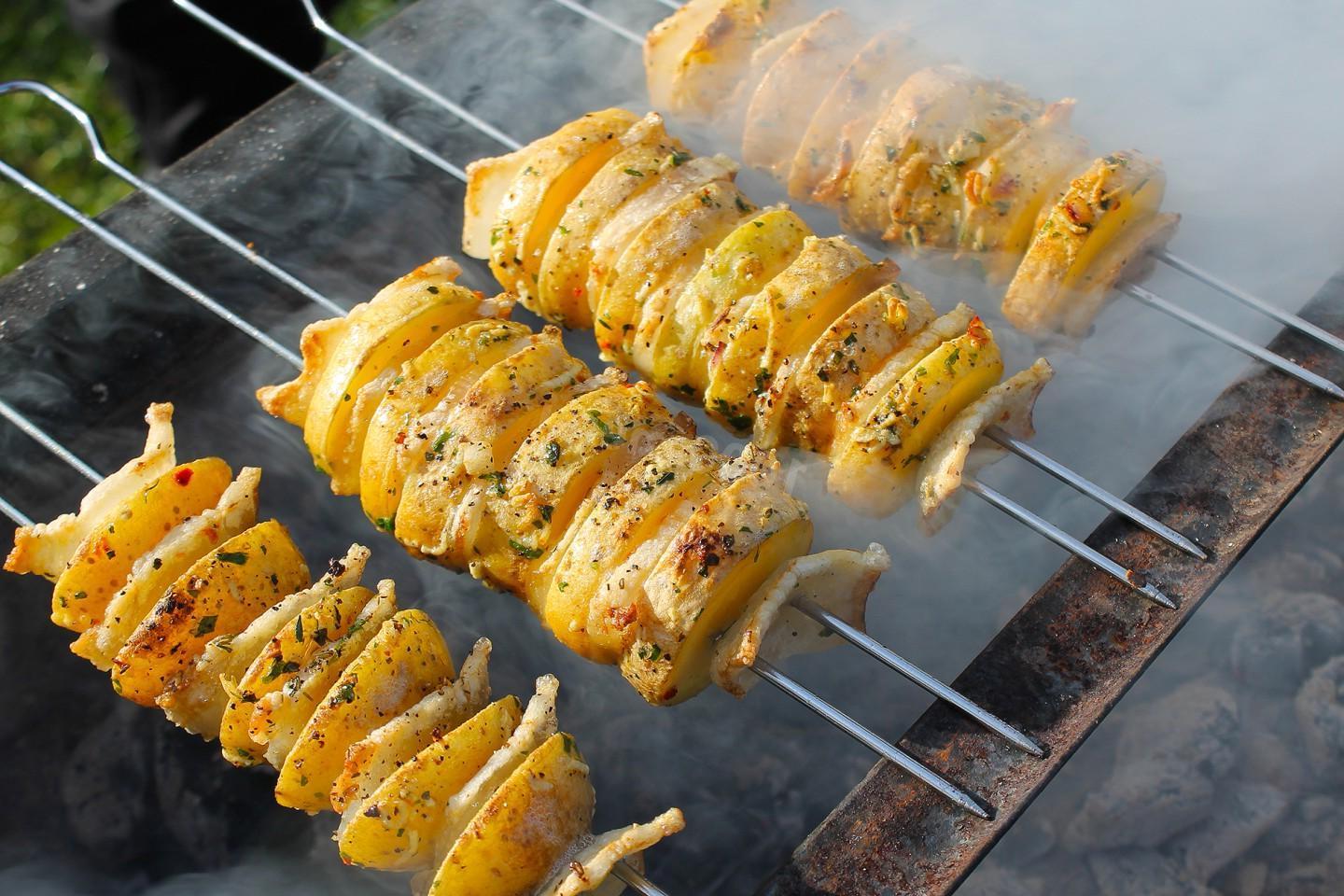Treat your loved ones to the most wonderful dish with the smell of a fire! Thinking about what new and interesting things to cook outdoors? Very tasty, juicy and aromatic potatoes with lard on skewers on the grill will delight you and your guests! Itʼs quick and easy to prepare and can be eaten in minutes!