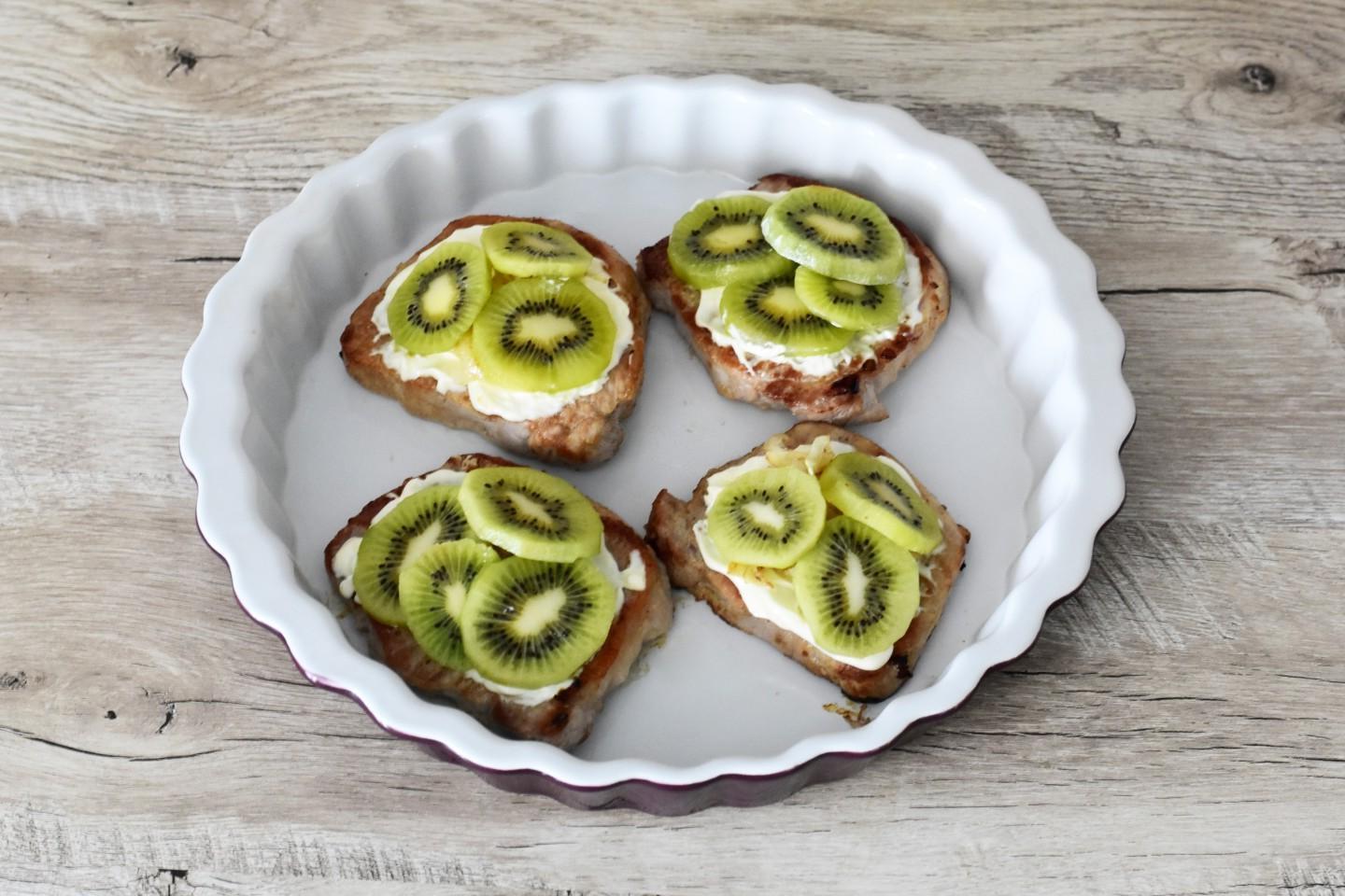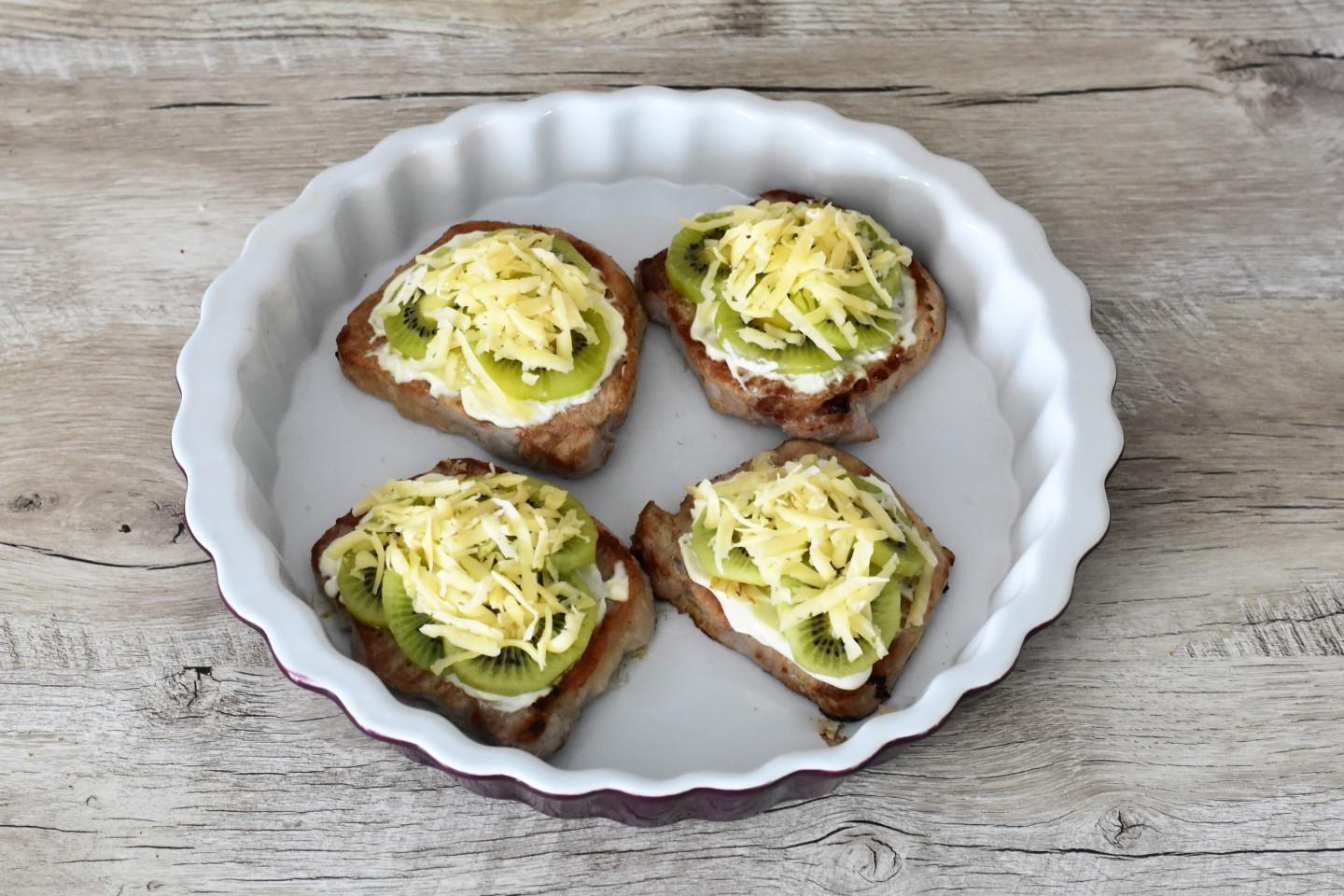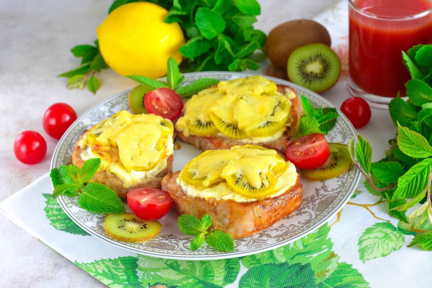 Surprise your guests with an original dish with a magical taste! Kiwi meat turns out incredibly tasty. Light sourness from fruit and stretchy melted cheese perfectly complement any meat. This dish is easy to surprise guests and please your family on weekdays.