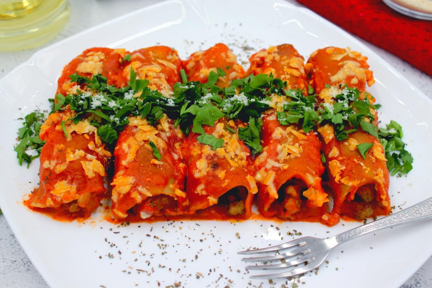 Simple, tasty, looks beautiful on the plate! Cannelloni with minced pork in tomato sauce is not only very tasty, but also a very easy dish to prepare. It will diversify your daily meal, but it will not require any very unique and uncomplicated products.