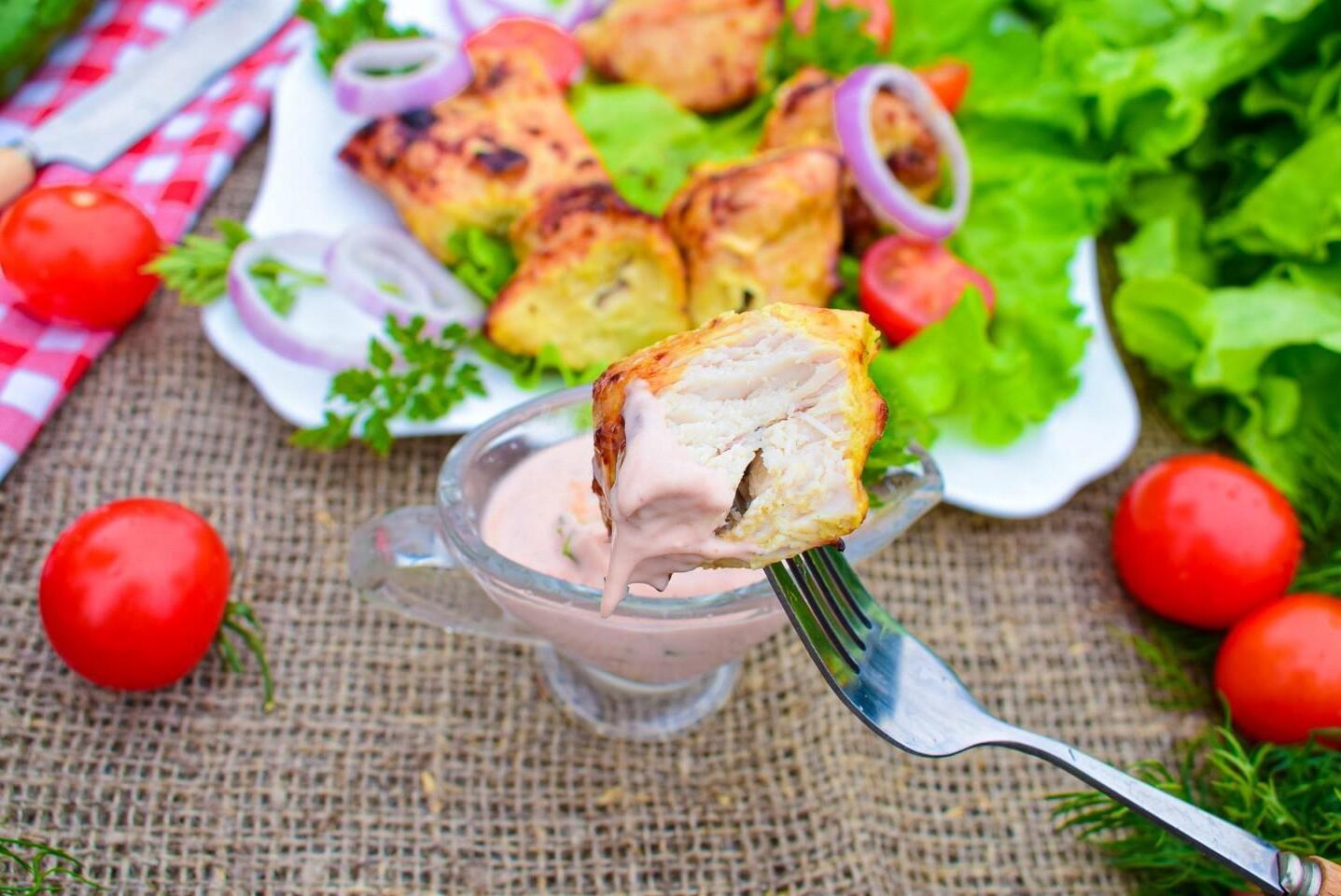 Delicious, aromatic, juicy, with a golden brown crust! We cook chicken shish kebab on the grill, which you can replace with a regular oven if necessary. The main thing in this dish is a good, very successful marinade in mayonnaise with onions and mustard. Extraordinarily tasty!