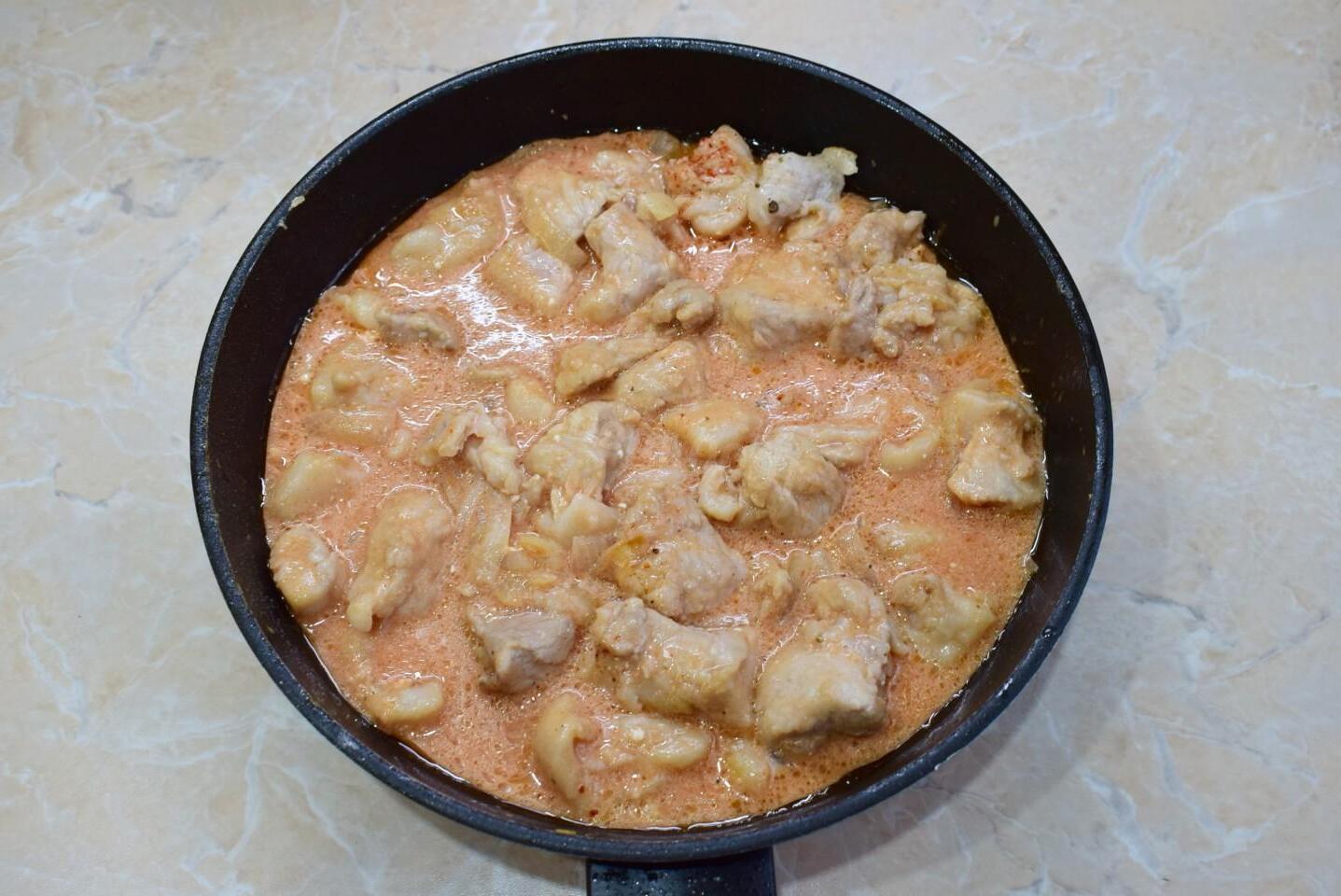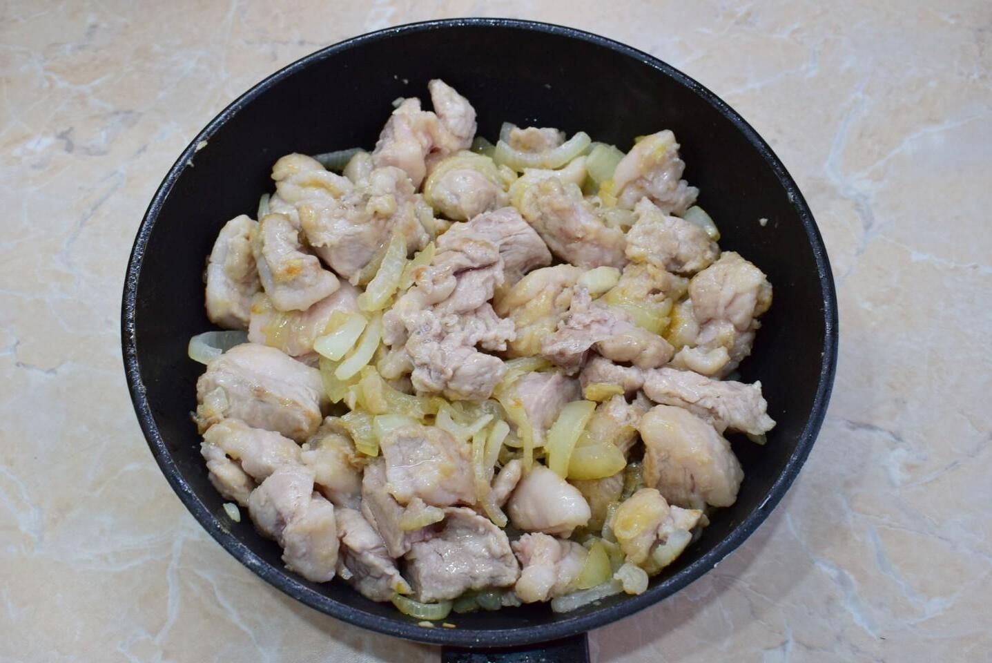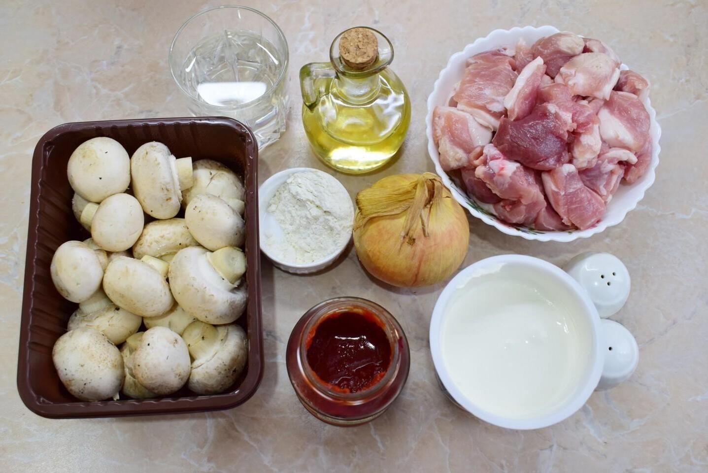 A simple, affordable and delicious everyday dish! Pork with mushrooms in a frying pan in sauce with onions is suitable for family or holiday lunch and dinner. Tender meat in aromatic gravy will not leave anyone indifferent. You can use any mushrooms, fresh or marinated.