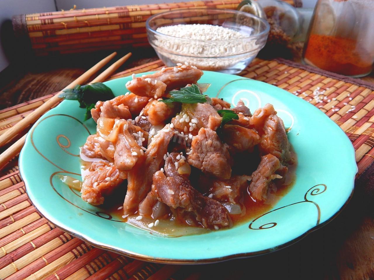 An Asian meat dish with a spicy taste! Korean pork is a popular dish in Korean cuisine. This dish is familiar to those who are fans of Asian cuisine and love spicy meat dishes and spicy vegetable salads. Korean pork combines the piquancy of spices and the sour-sweet tartness, perfectly complementing the taste of spicy meat. In its homeland, this dish is called Daiji Bulgogi. It is usually served with rice, soy sauce and Korean salads.