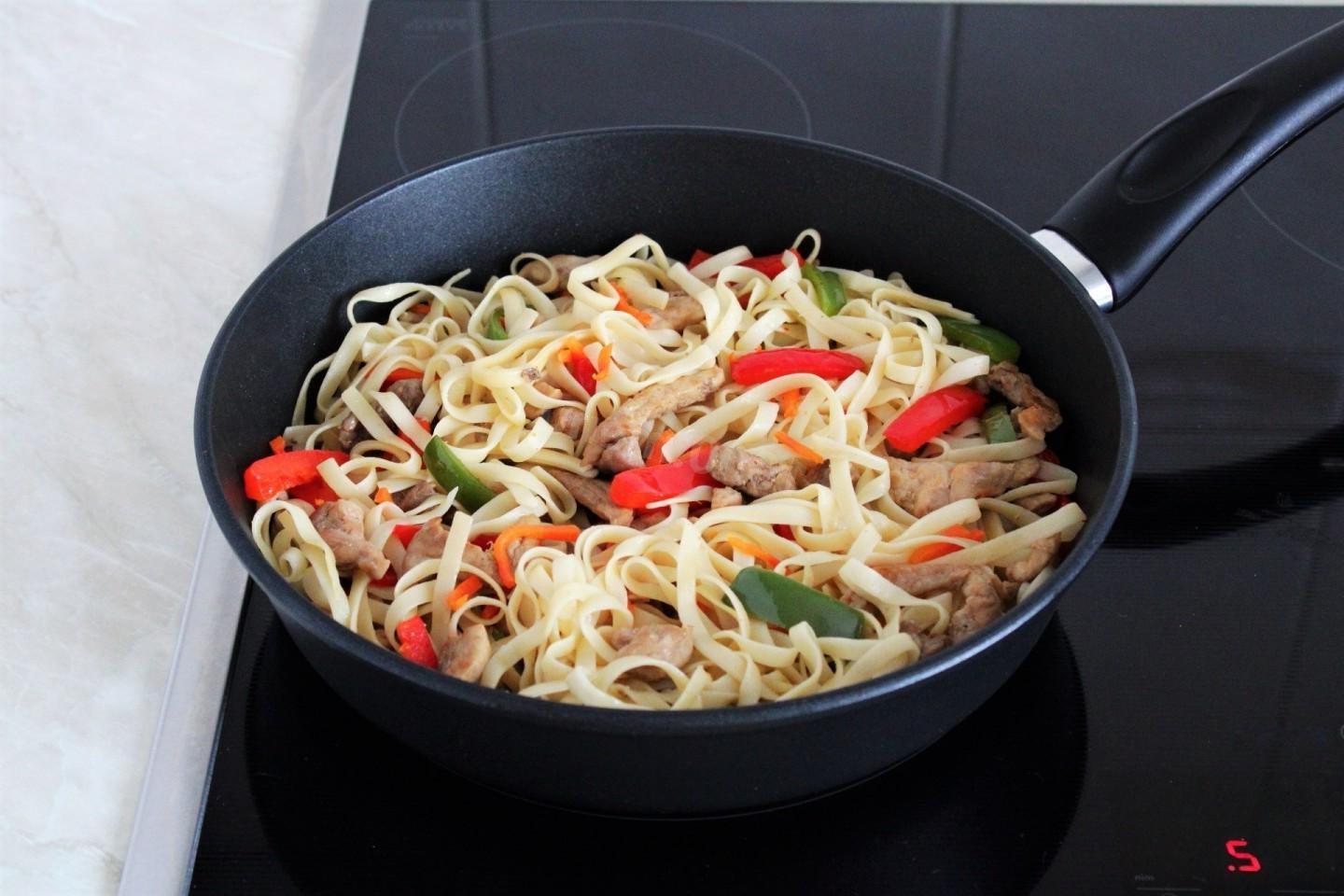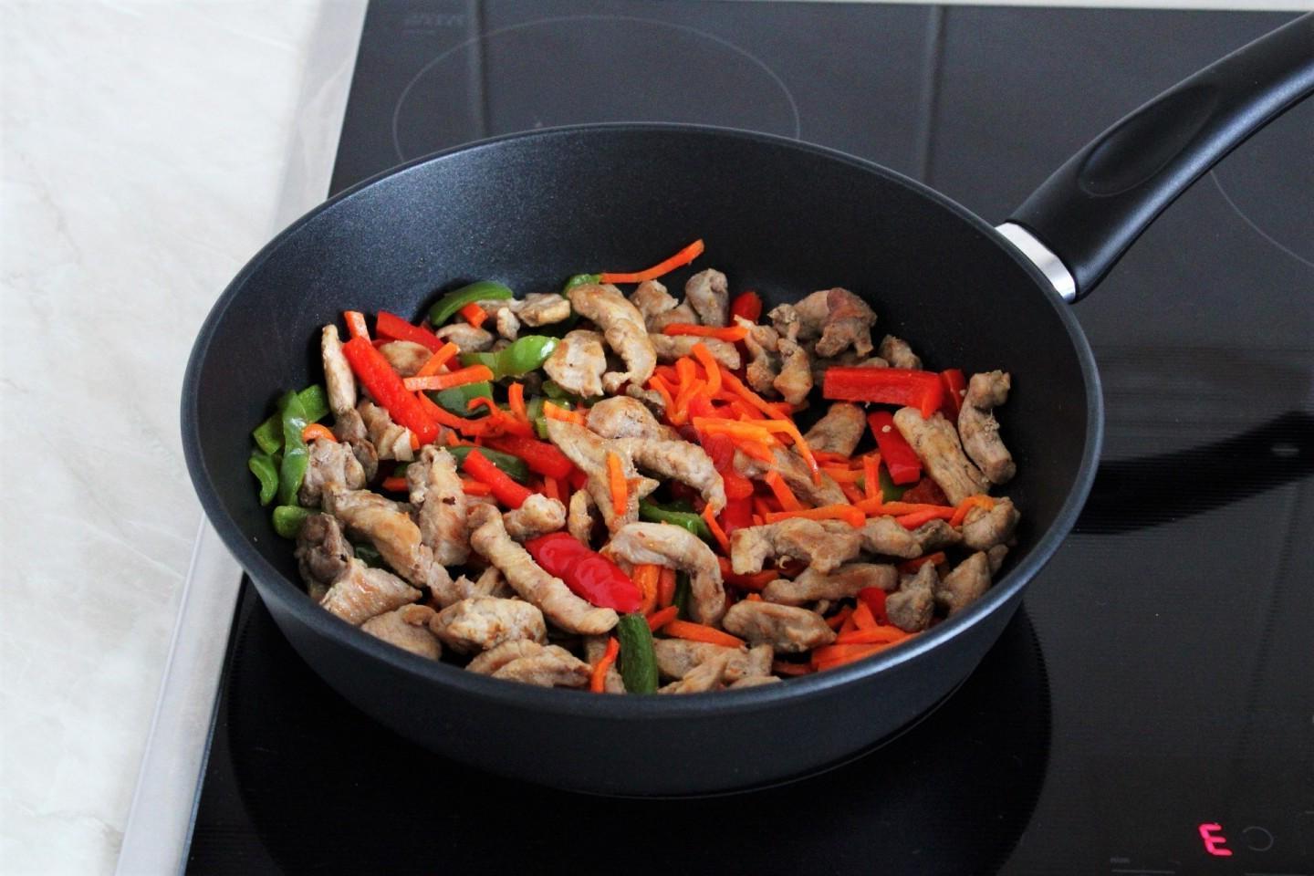 From ordinary products with an unusual taste — quickly and easily! Noodles with pork and vegetables are a great option to diversify your family lunch or dinner. It contains juicy pieces of meat soaked in soy sauce and vegetables that can be supplemented with others at your discretion, each time getting a new dish.