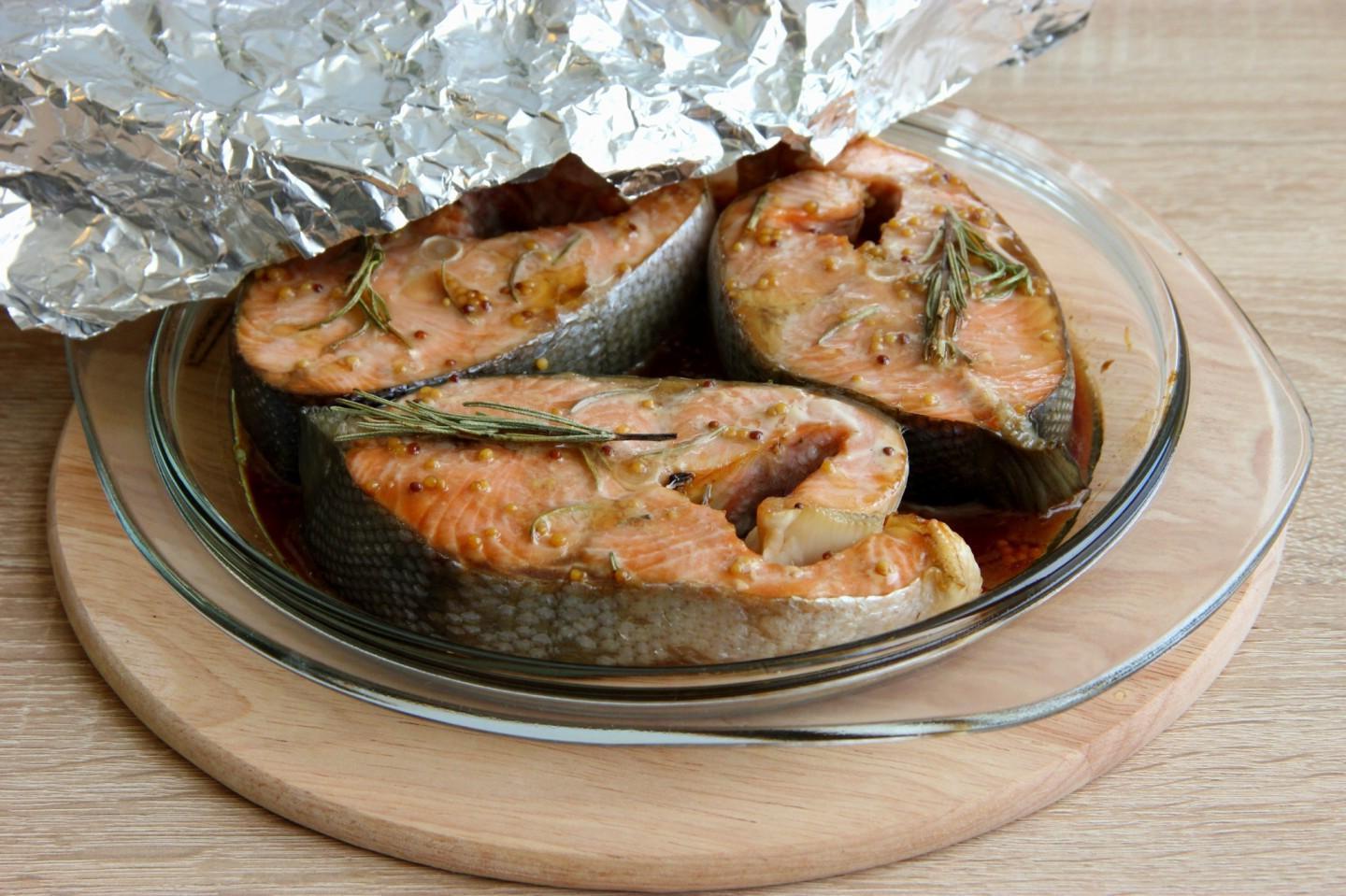 They are prepared simply and quickly — they turn out tender and piquant! You can cook juicy chum salmon steaks in the oven in 40 minutes. This is a surprisingly light, healthy dish that can be complemented with a side dish, fresh vegetable salad, and sauces. This recipe can be used to cook any red fish!
