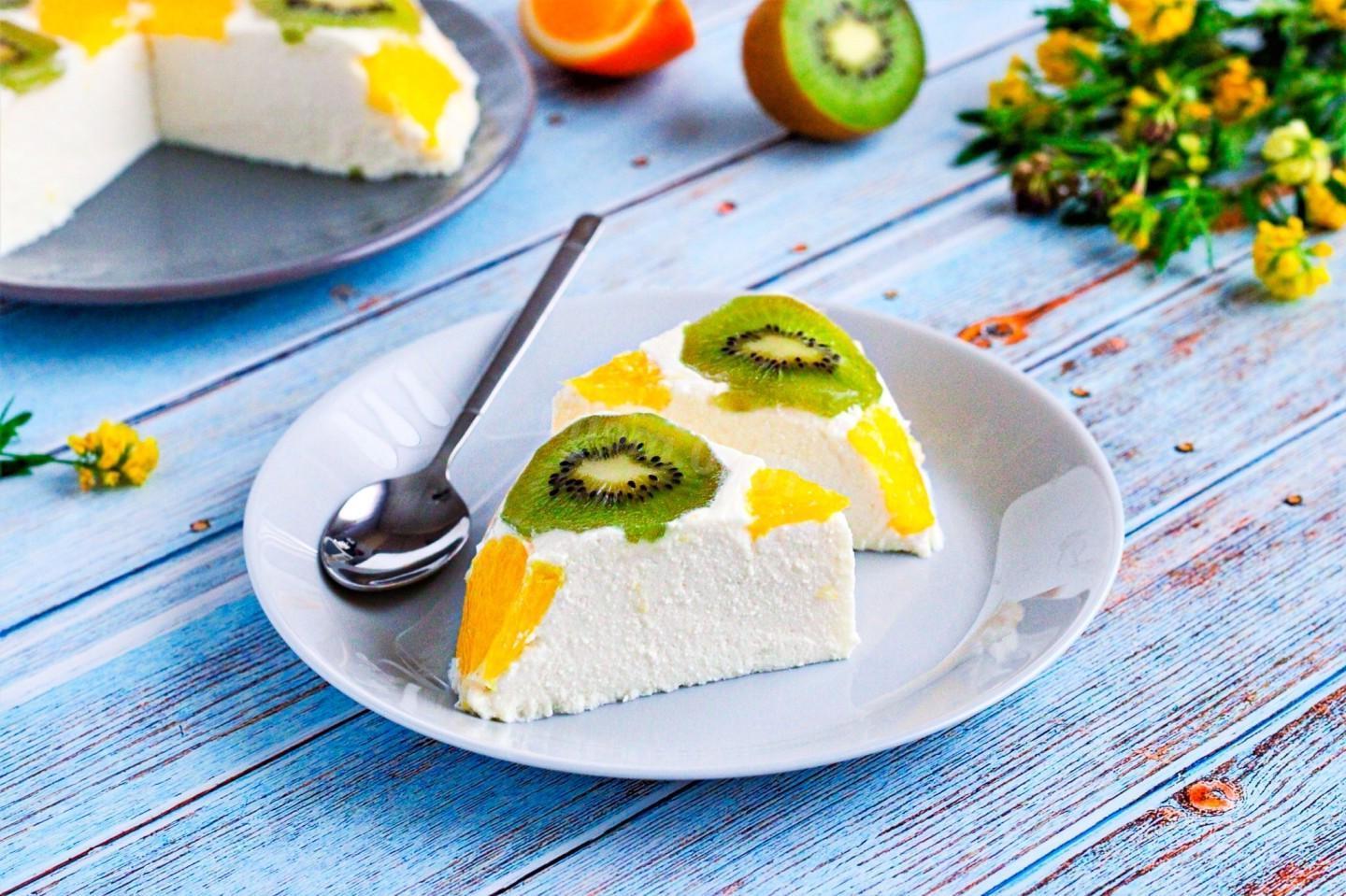 Bright and fresh, with a delicate delicious taste! A no-bake cake with gelatin and fruit is easy and simple to make. And you donʼt need an oven! This dessert will perfectly refresh you on a hot summer day, but it is also appropriate to serve it at the table in winter.