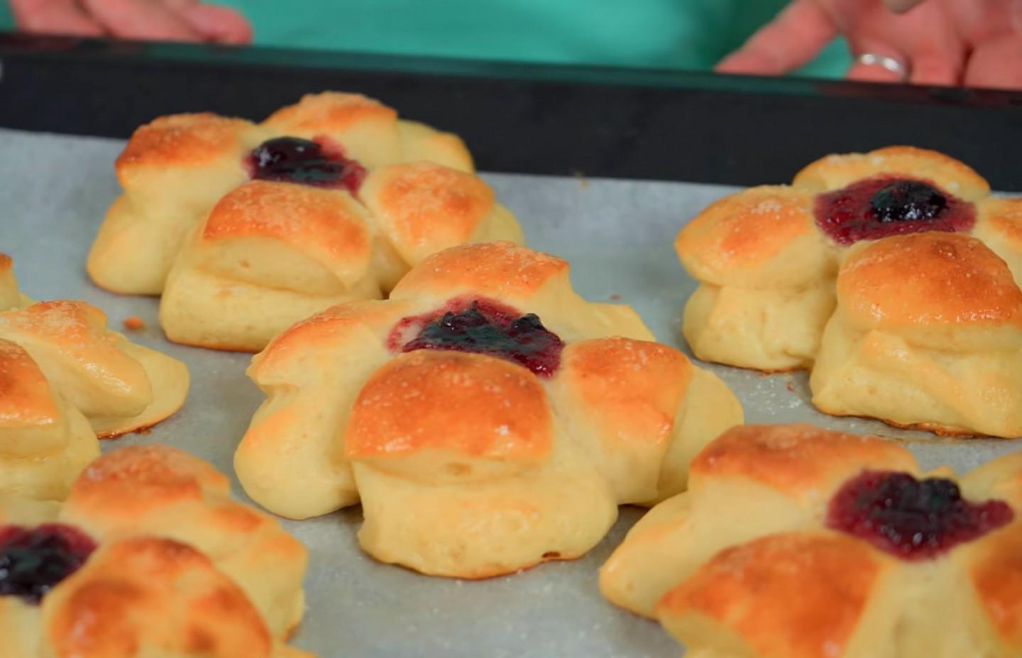 Cherry-Filled Cottage Cheese Buns with Vanilla