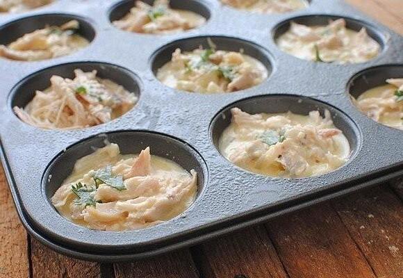 A chic snack for the holiday table — eaten in one fell swoop! Chicken in muffin tins is a great appetizer thatʼs ready in 40-45 minutes. It looks original, simple design, perfect for a dinner party.