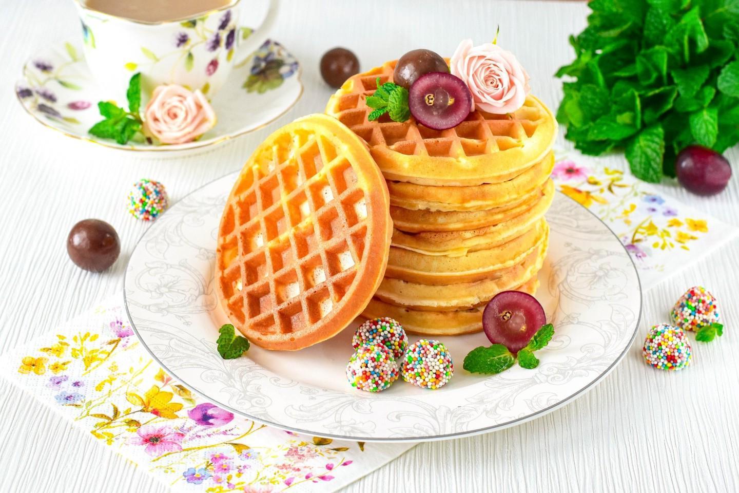 Very tasty and quick breakfast, beautiful and appetizing! Sweet waffles in a waffle iron made from airy biscuit dough will appeal to adults and children. Baked goods can be supplemented with fresh berries, fruits, sweet sauces and even ice cream. Easy to prepare, any beginner can handle it.