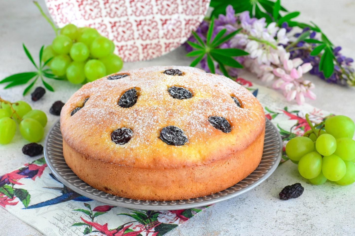 Soft, fluffy, fragrant! Gather the whole family around the table. Raisin pie in the oven is prepared from ingredients that are usually always available. The dough turns out like charlotte, but with a more delicate flavor of sour cream. Raisins can be replaced with other dried fruits or fresh berries.