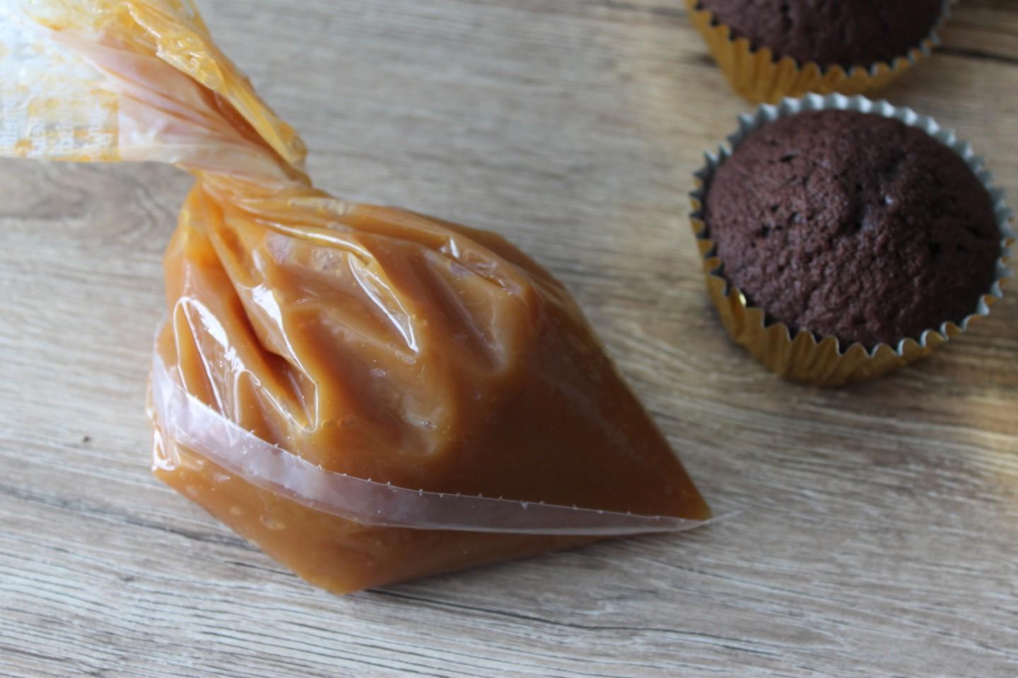 A combination of three flavors. Its godlike! Prepare! Itʼs 36 degrees here. But still I want something sweet. And then I came across such an interesting recipe. The unusual composition of the cupcakes attracted me. Yes, this dough is truly incredibly tasty. Very gentle, almost weightless. The filling certainly speaks for itself. Caramel! You can just eat it without anything! Well, cream cheese, it complements the combination of flavors here. Despite the heat, itʼs delicious with coffee! You can also serve it with tea or juice. Enjoy your meal.