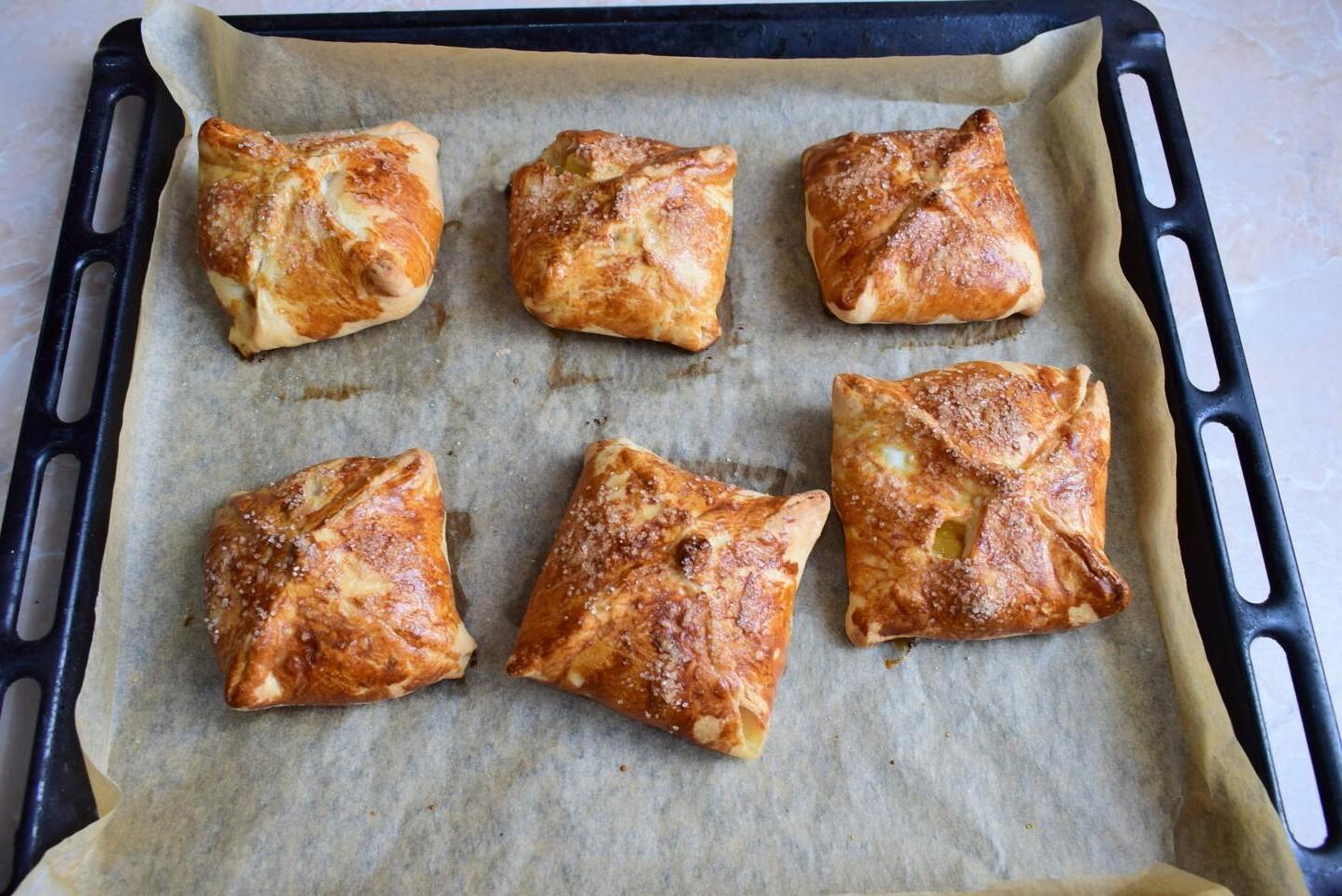 Tasty and aromatic, simple and quick, for breakfast! Envelopes with apples made from puff pastry are baked in the oven very quickly. Using ready-made puff pastry, you can save a lot of time and effort. You will have time to prepare such sweet pastries for your family for Sunday breakfast!