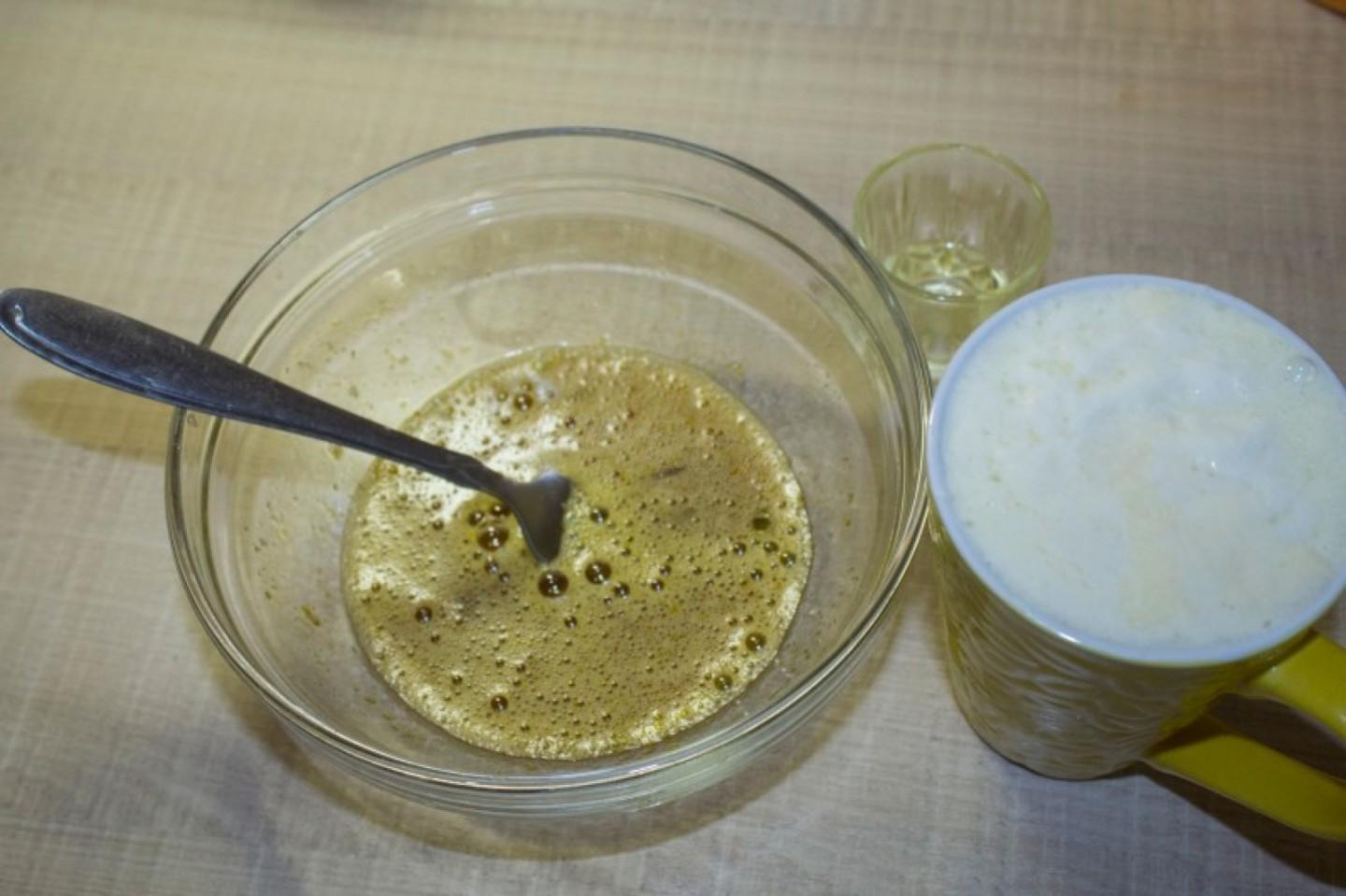 (1 table. l. into the dough and about 4 table. l. for frying)