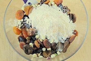 Such beauty — for New Year and Christmas baking! A cupcake with a rich and rich variety of flavors, according to this recipe, is distinguished by the fact that it contains negligibly little dough itself — it practically consists of only one filling, nuts and dried fruits. It can be stored for quite a long time and only becomes tastier over time. During the “aging” period, the dried fruits share their aromatic moisture, which makes the cake soft and moist.