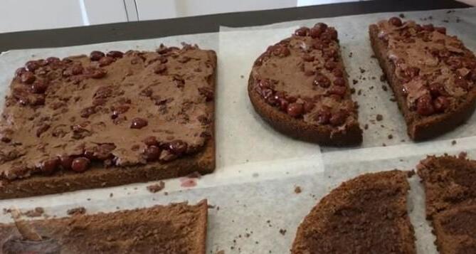 (Round chocolate sponge cake — 1 piece; Chocolate rectangular sponge cake — 1 piece.)