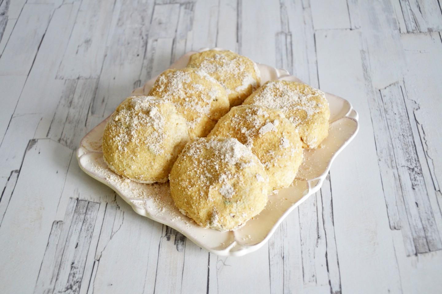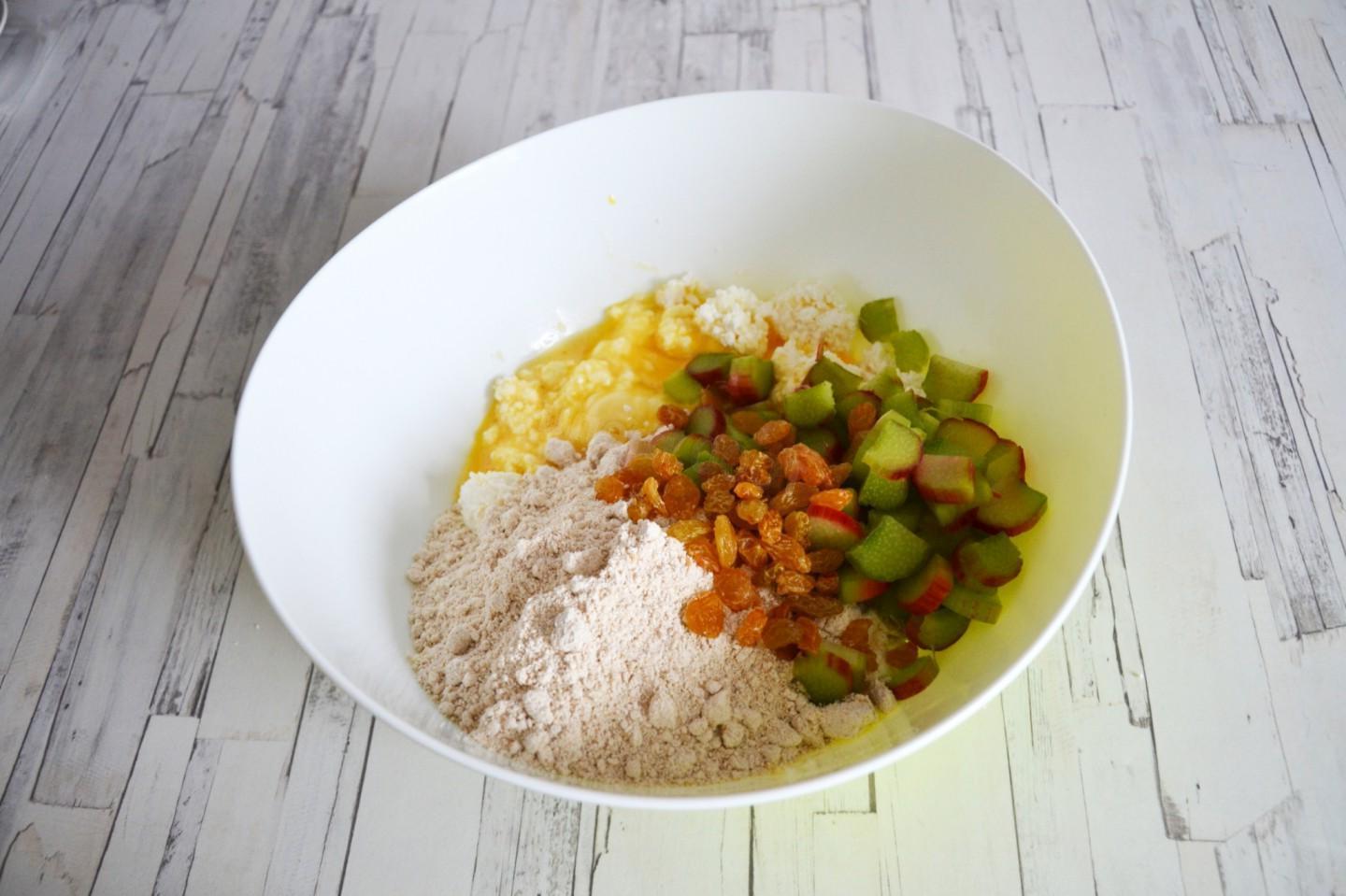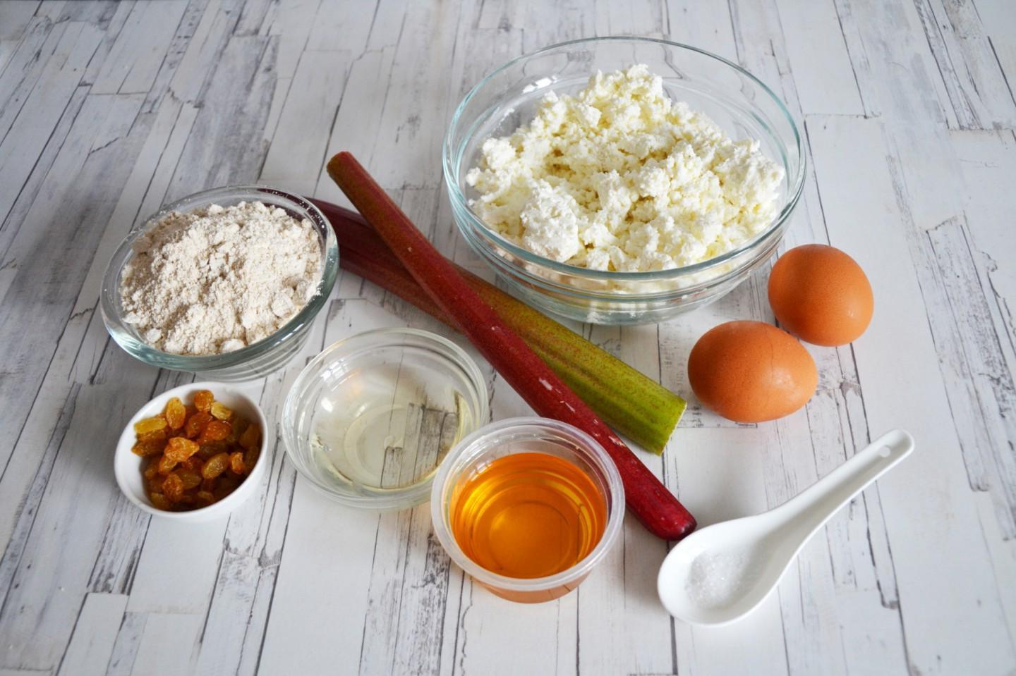 These cheesecakes can also be made from regular wheat flour. I prepared these interesting and tasty cheesecakes to cut down on the huge amount of rhubarb that I had accumulated in the refrigerator. I found the recipe on the Internet. Oatmeal makes the dough very soft and pliable. The cheesecakes turn out to be very filling — one such cheesecake will replace a full breakfast.