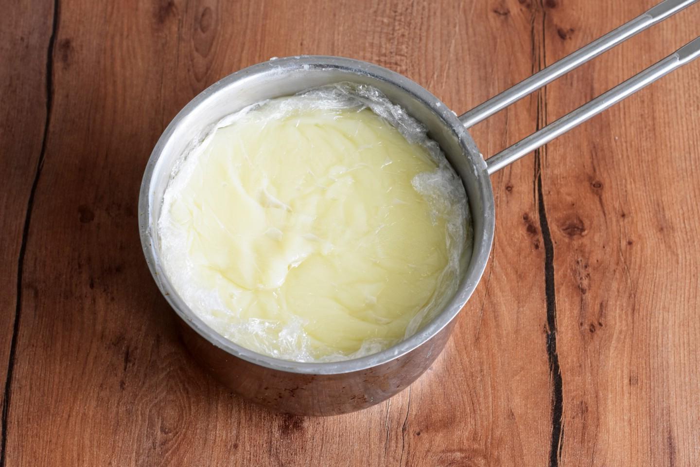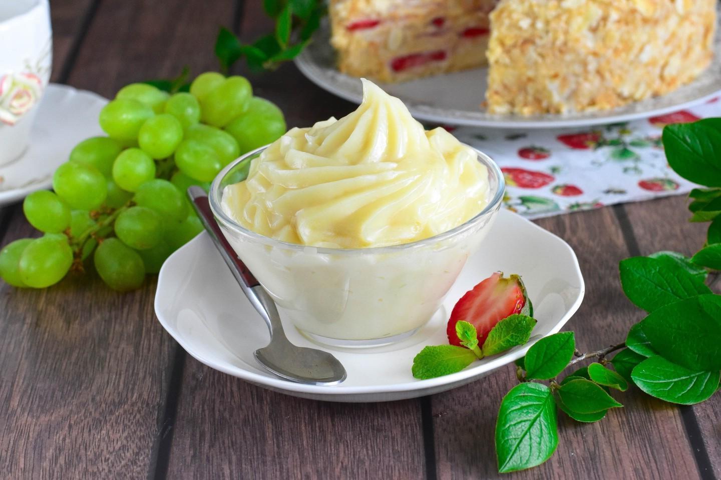 Holds its shape perfectly and is incredibly soft! Eggless milk custard is suitable for any baking. You can not only layer cakes with cream, but also fill baskets, eclairs and other baked goods. It is also suitable for decorating ready-made cakes and pastries.