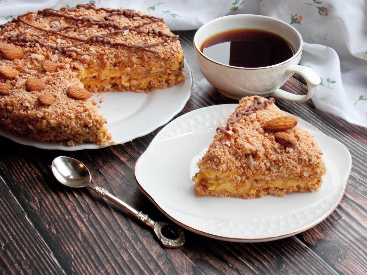 With a delicate nutty taste, easy and simple to prepare! A cake with almond layers and custard will pamper you and your family. It’s a pleasure to sit with him over a cup of tea in a close family circle. Or you can make it for the holiday table, treating your guests.