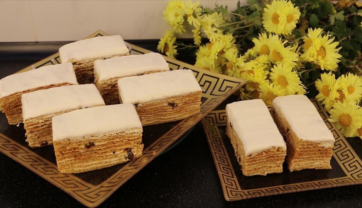Cakes without butter and cooking honey, cream — sour cream! This is the most delicate and easiest to prepare Honey cake. The main thing is not to forget to knead the dough in advance. Moist, moderately sweet, with a light citrus note and aromatic prunes.