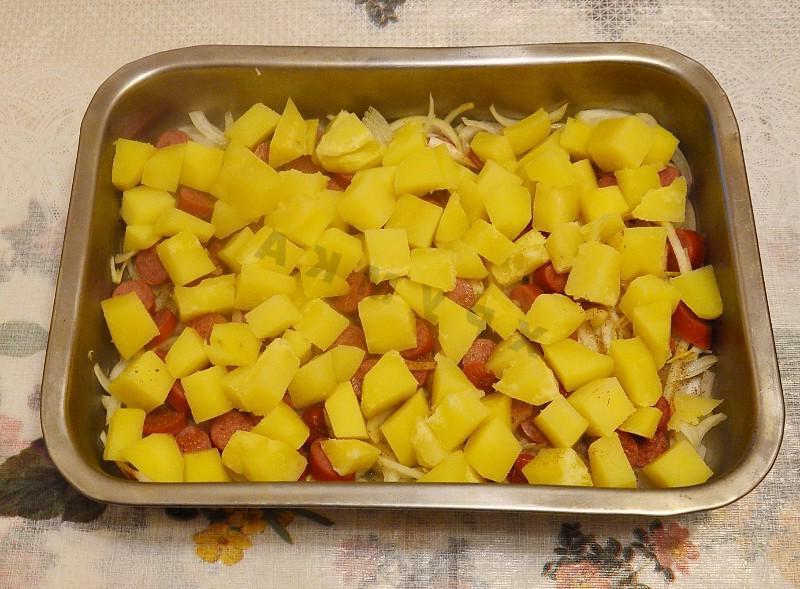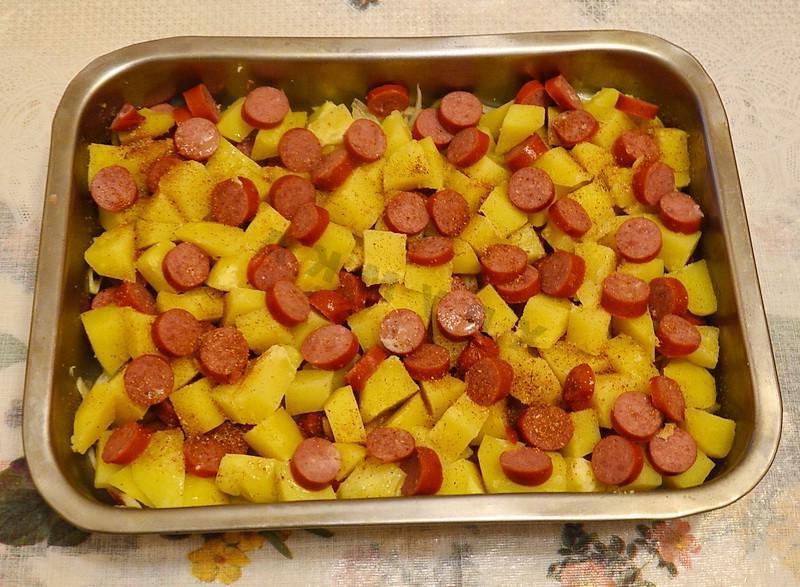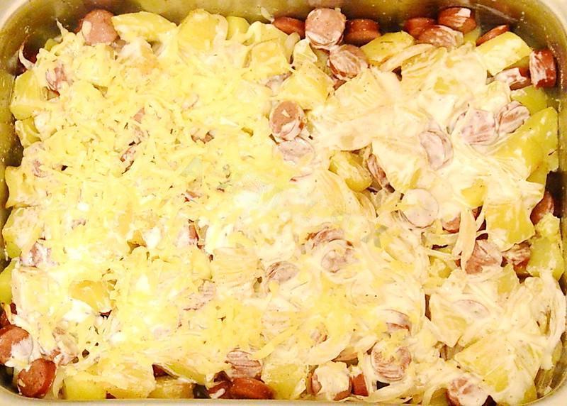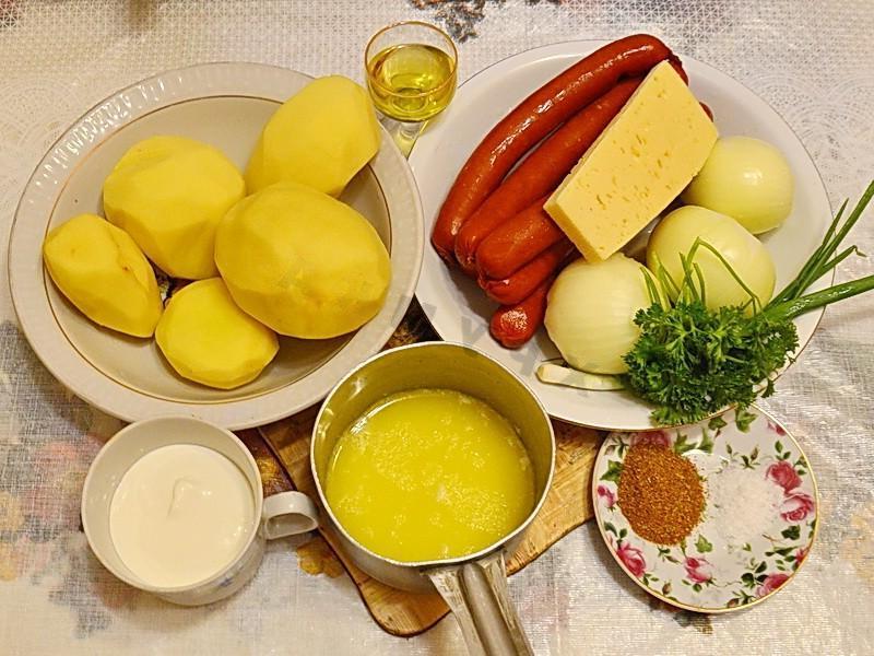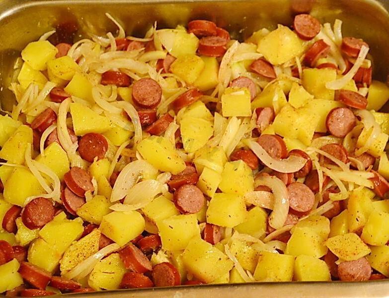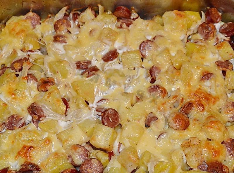 A quick, hot, satisfying and delicious dinner option for the whole family. This food is perfect for dinner when you don’t have time to cook anything more complex, and the whole family is hungry. There is little point in praising such a dish, since there are hardly people who are indifferent to potatoes and sausages. Itʼs so delicious!