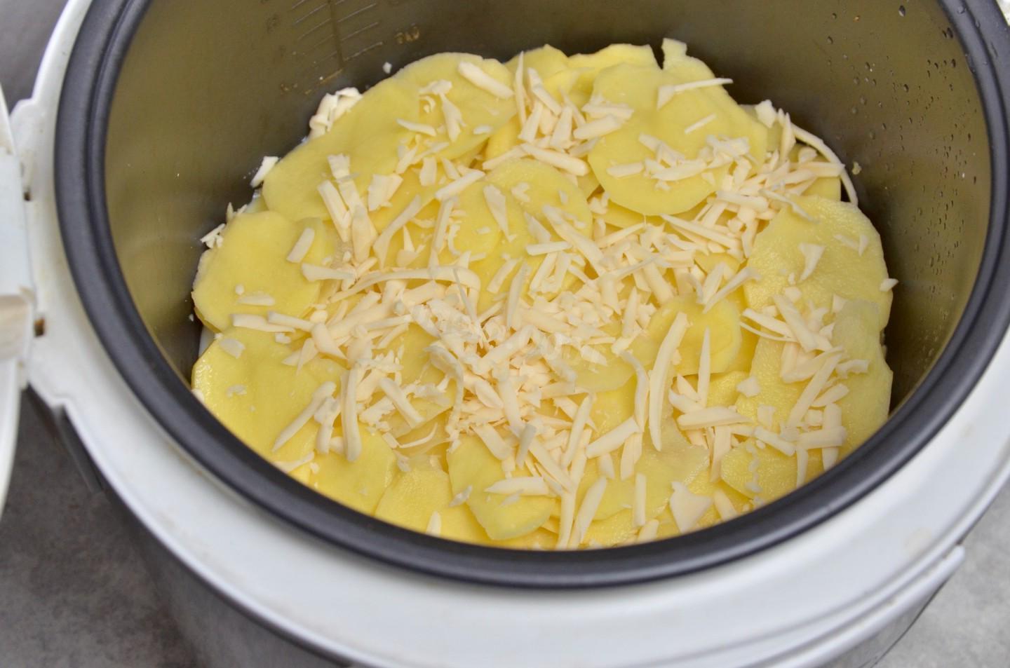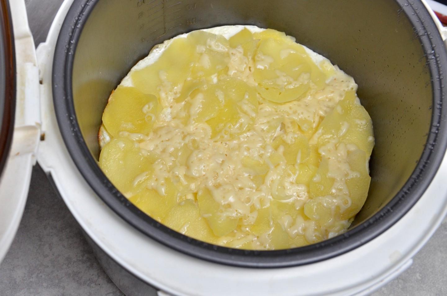 Ruddy, appetizing, flaky, juicy, well, very tasty! Potato casserole in a slow cooker is prepared from very thinly sliced potatoes with egg and milk filling; cheese and fried onions add piquancy to the dish. An excellent combination for lunch or dinner, using the most ordinary products.