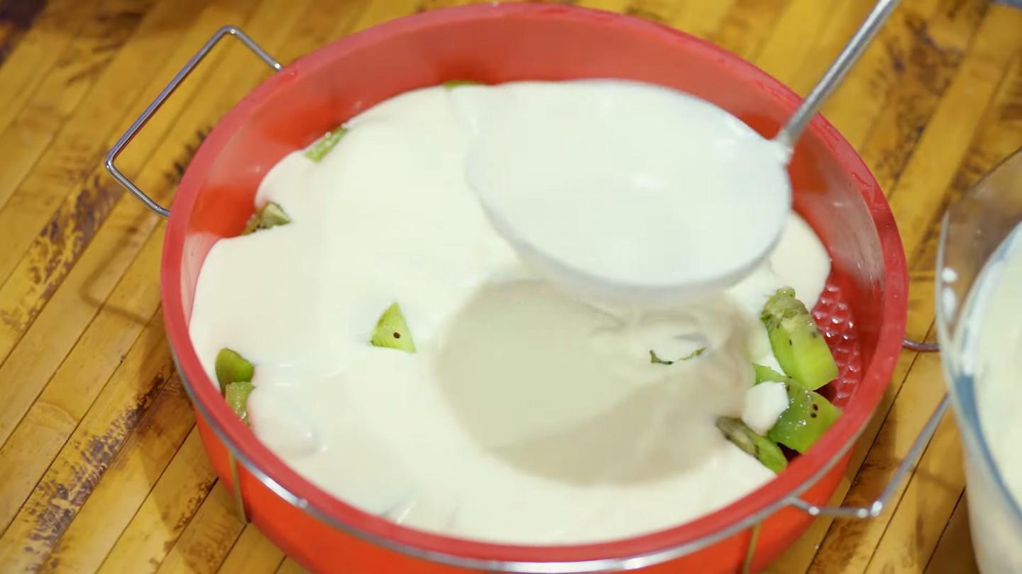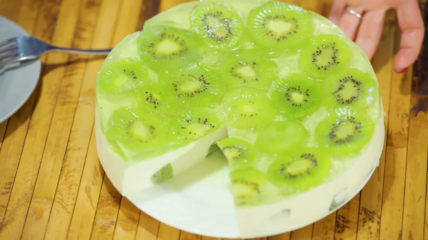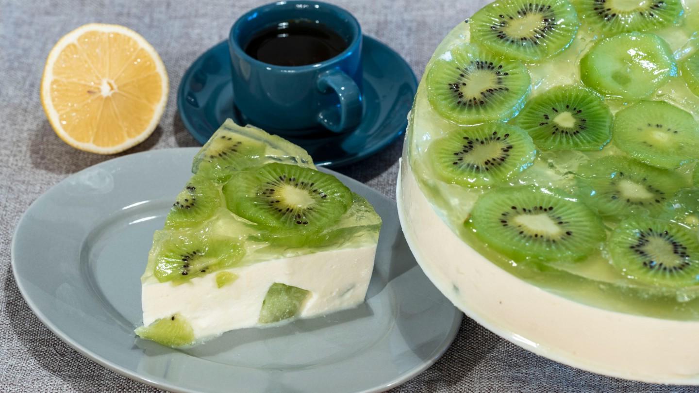 No-Bake Kiwi Jelly Dessert with Cottage Cheese and Sour Cream