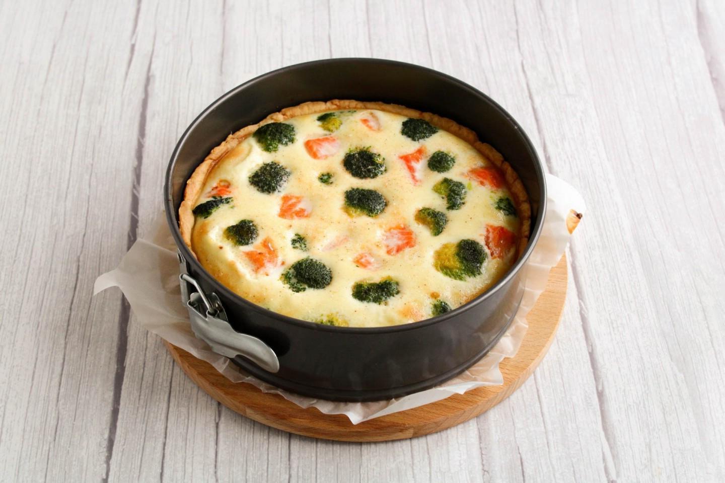 Bright, tasty, for meeting guests and everyday menu! Quiche with salmon and broccoli is a combination of thin shortcrust pastry, filling and filling, which gives the pie a delicate creamy taste. It can be served at any time of the day and as a holiday snack. It’s easy to prepare, and it won’t leave anyone indifferent!