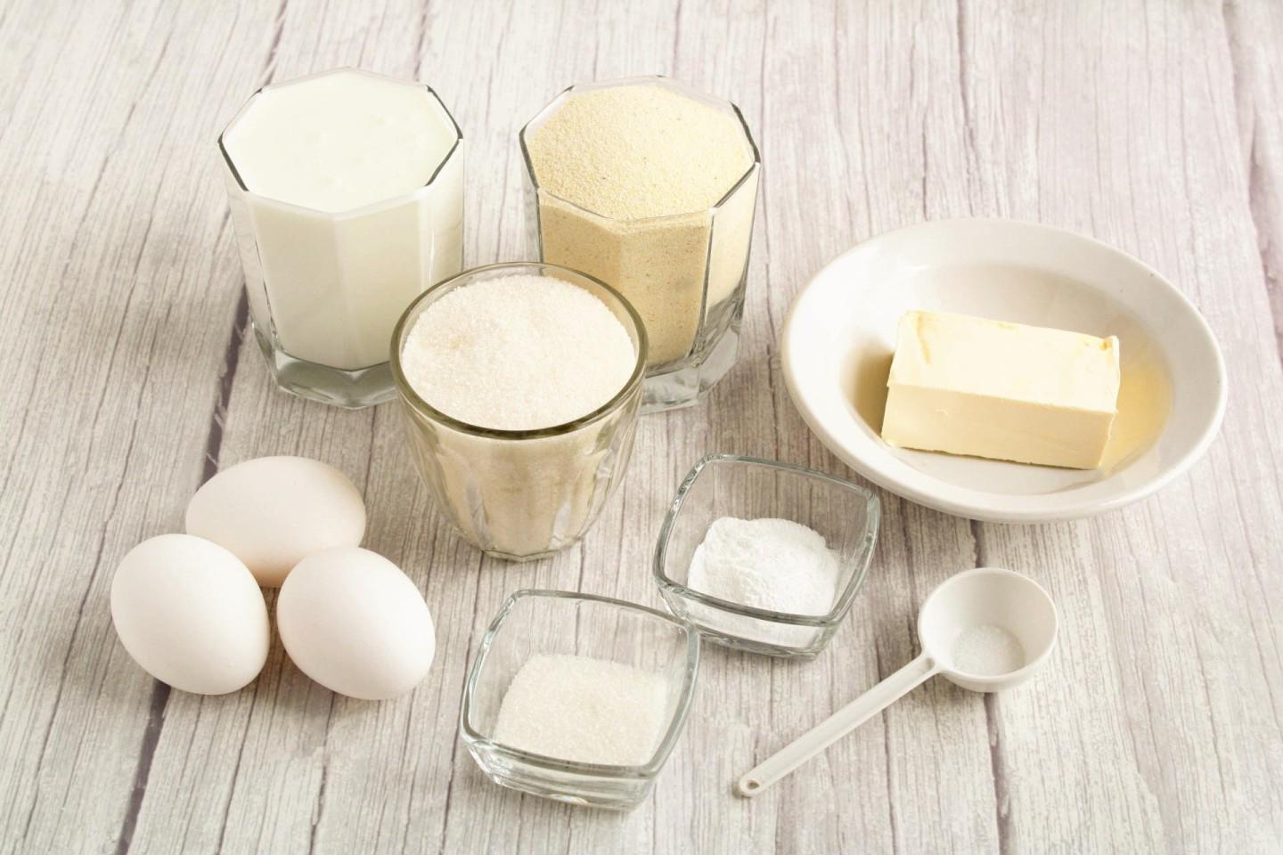 From affordable products, delicate, for family tea drinking! Manna made with kefir turns out fluffy and crumbly; it is baked in the oven without adding flour, which makes its structure softer and more porous. Without much time and effort, you get very simple and very tasty baked goods!