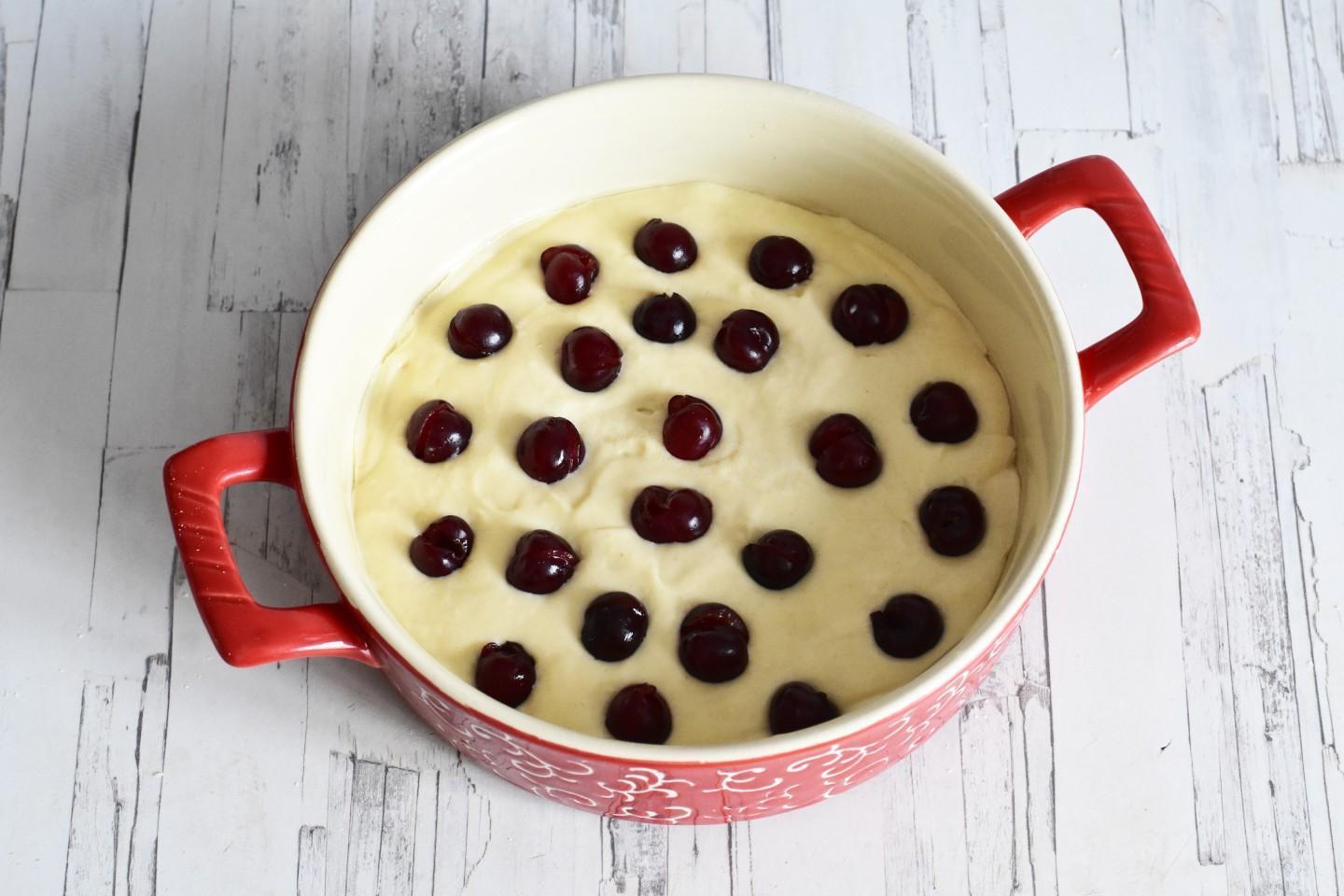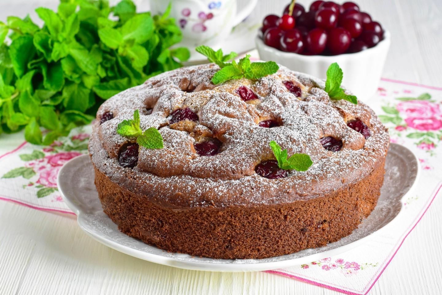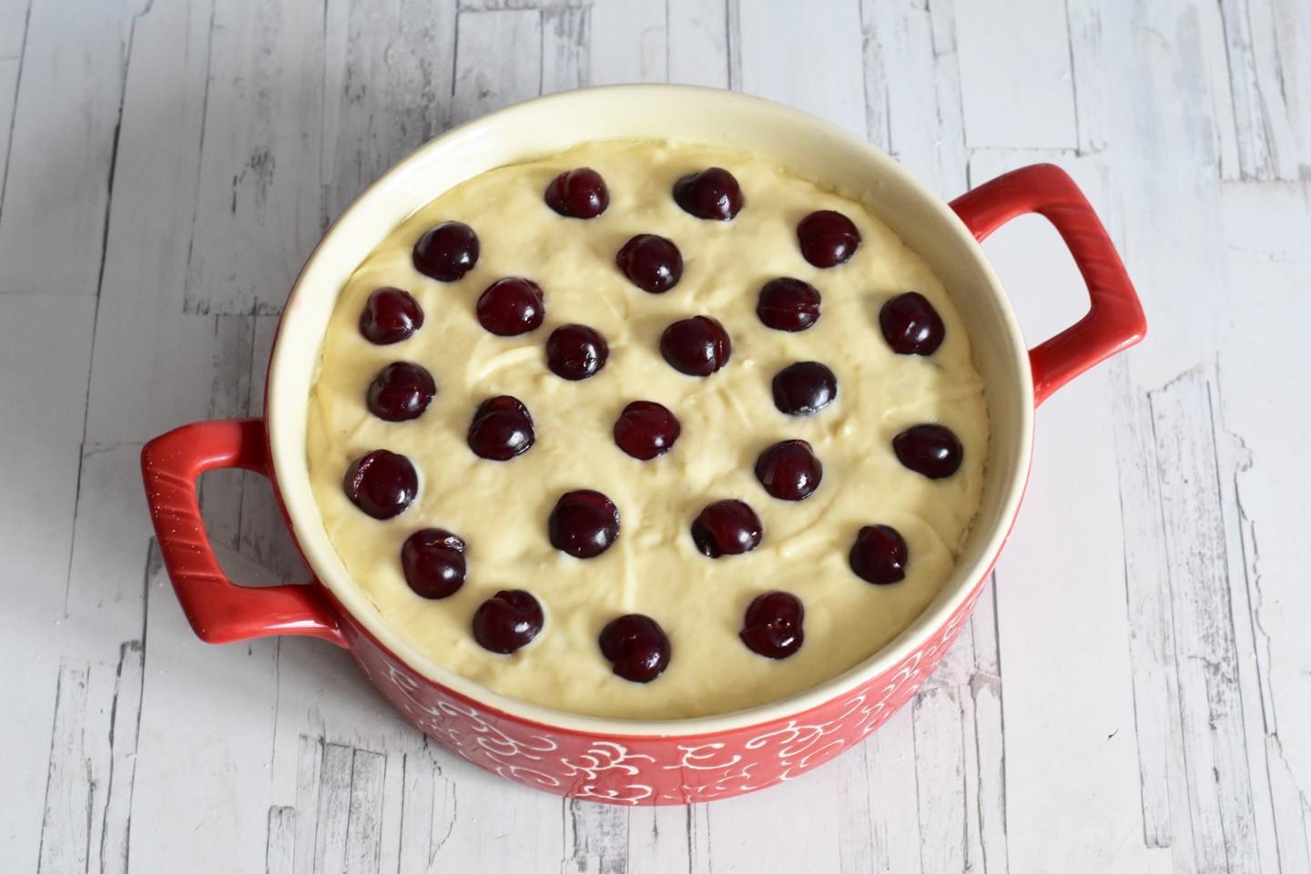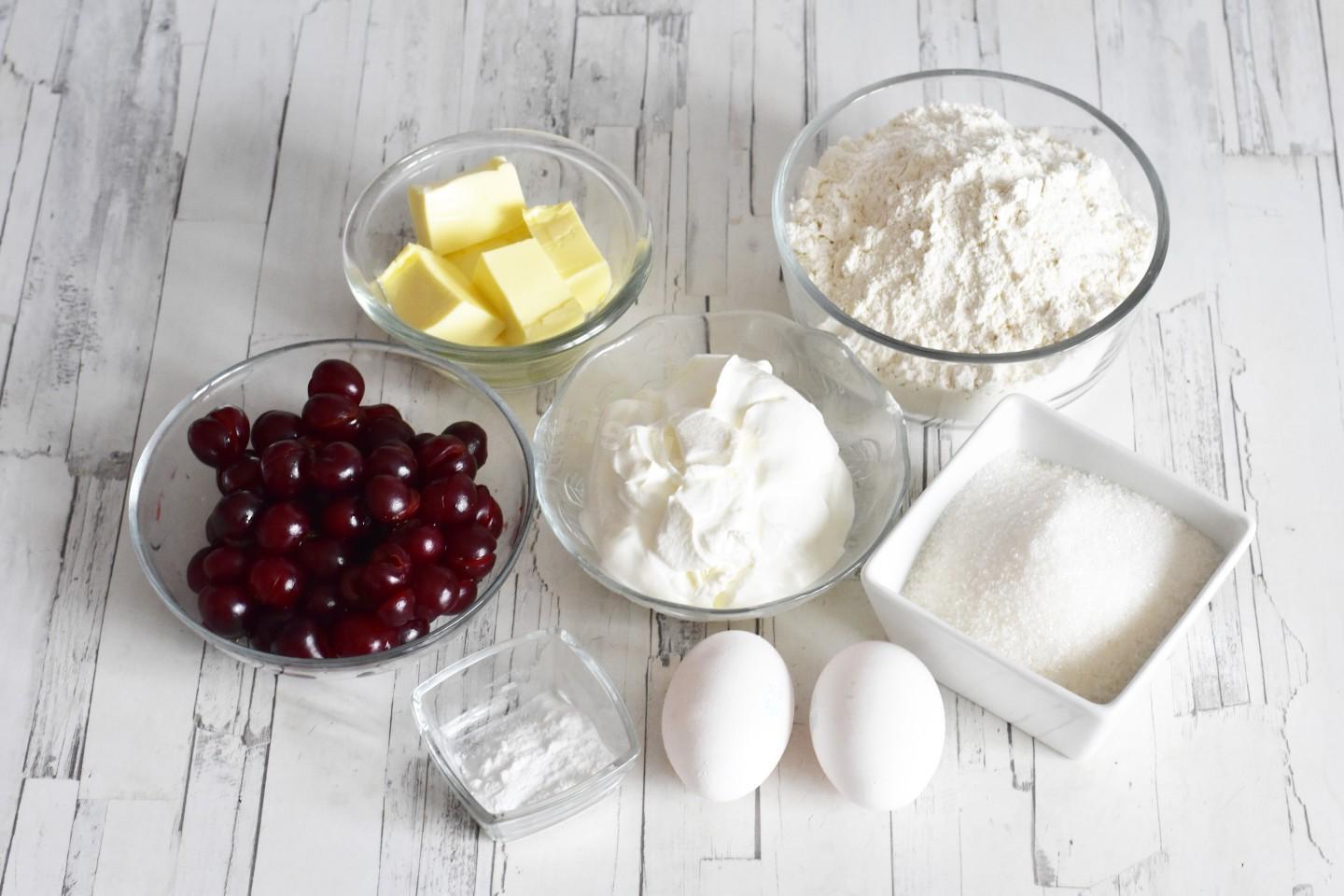 Lush, airy, very light and tasty, for any occasion! You can cook a simple cherry pie in the oven at any time of the year. In the summer — with fresh berries, and the rest of the time — with canned or frozen ones. Soft airy dough with sour cream goes well with sour cherries!