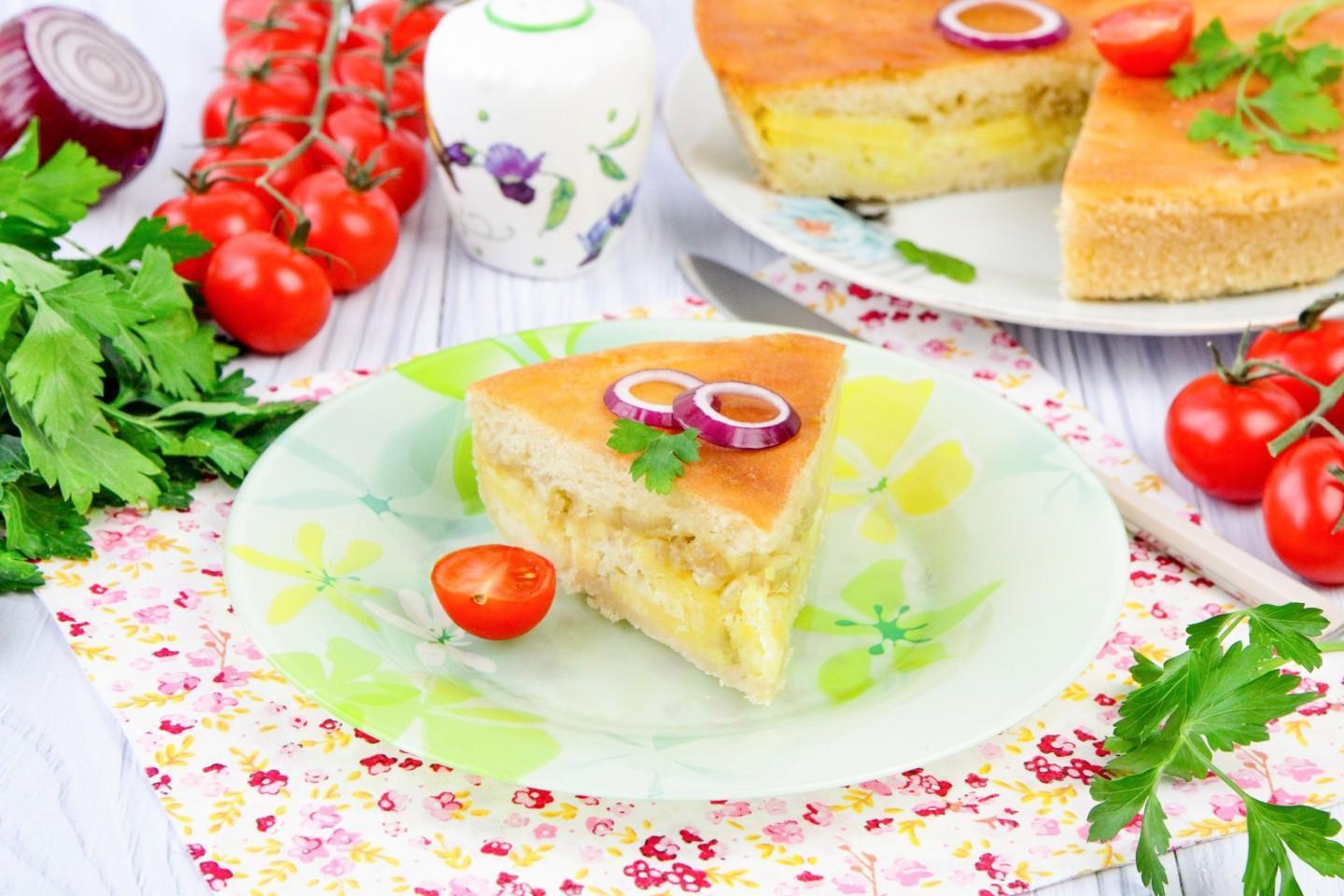Soft and tender baked goods without rolling out the dough — delicious! Pie with potatoes and onions is baked in the oven from jellied yeast dough, which is easier and faster to make than traditional dough. The delicate, porous crumb goes well with any filling. This type of baking is perfect for a Lenten table.
