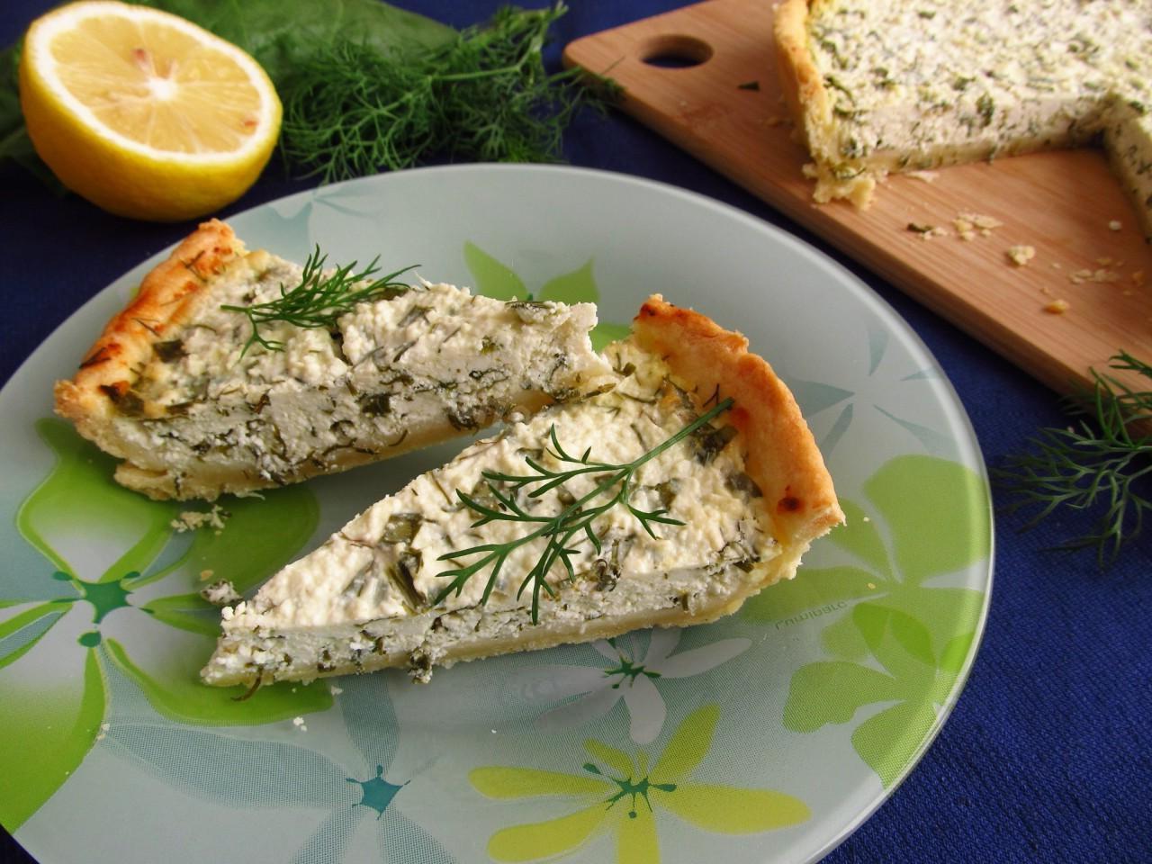 Fragrant cottage cheese pie with herbs — simple and delicious! An open pie with cottage cheese and herbs is simple and easy to prepare. This version of savory pastries is good to prepare in the summer season. Greens give the curd filling a juicy, fresh taste and aroma. The pie is good both warm and cold. Can be served with broth or for breakfast with tea or coffee.