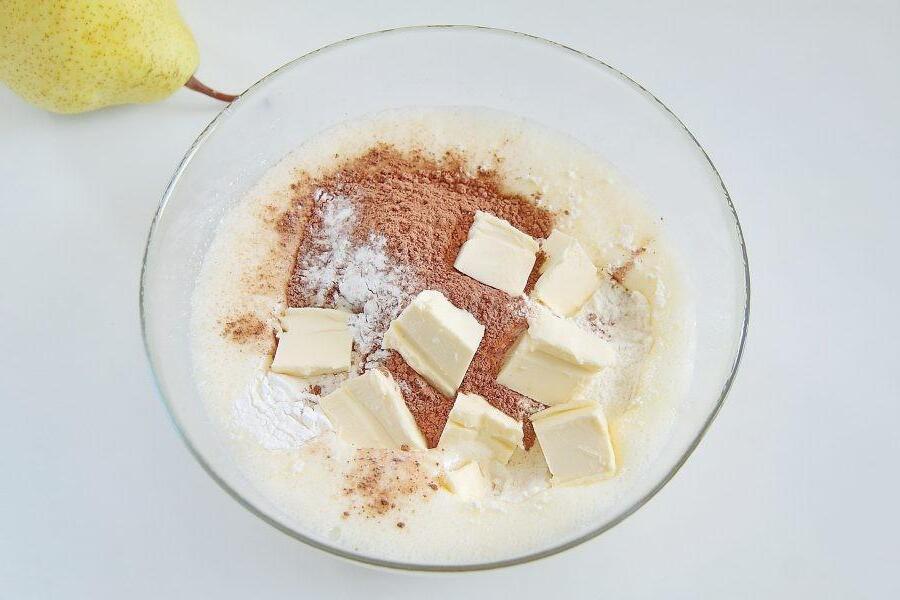 The most delicious pie from the available products! The pie turns out very tasty and aromatic! Delicate chocolate sponge cake goes perfectly with ripe and juicy pear. Any sweet varieties are suitable for baking, but make sure that the pears are not overripe, then you will get a simply magnificent result! If desired, the pears can be sprinkled with cinnamon, and vanillin can be added to the dough for more flavor. In any case, such a chocolate pie will be a great addition to freshly brewed coffee, tea, or just a glass of milk or cocoa.
