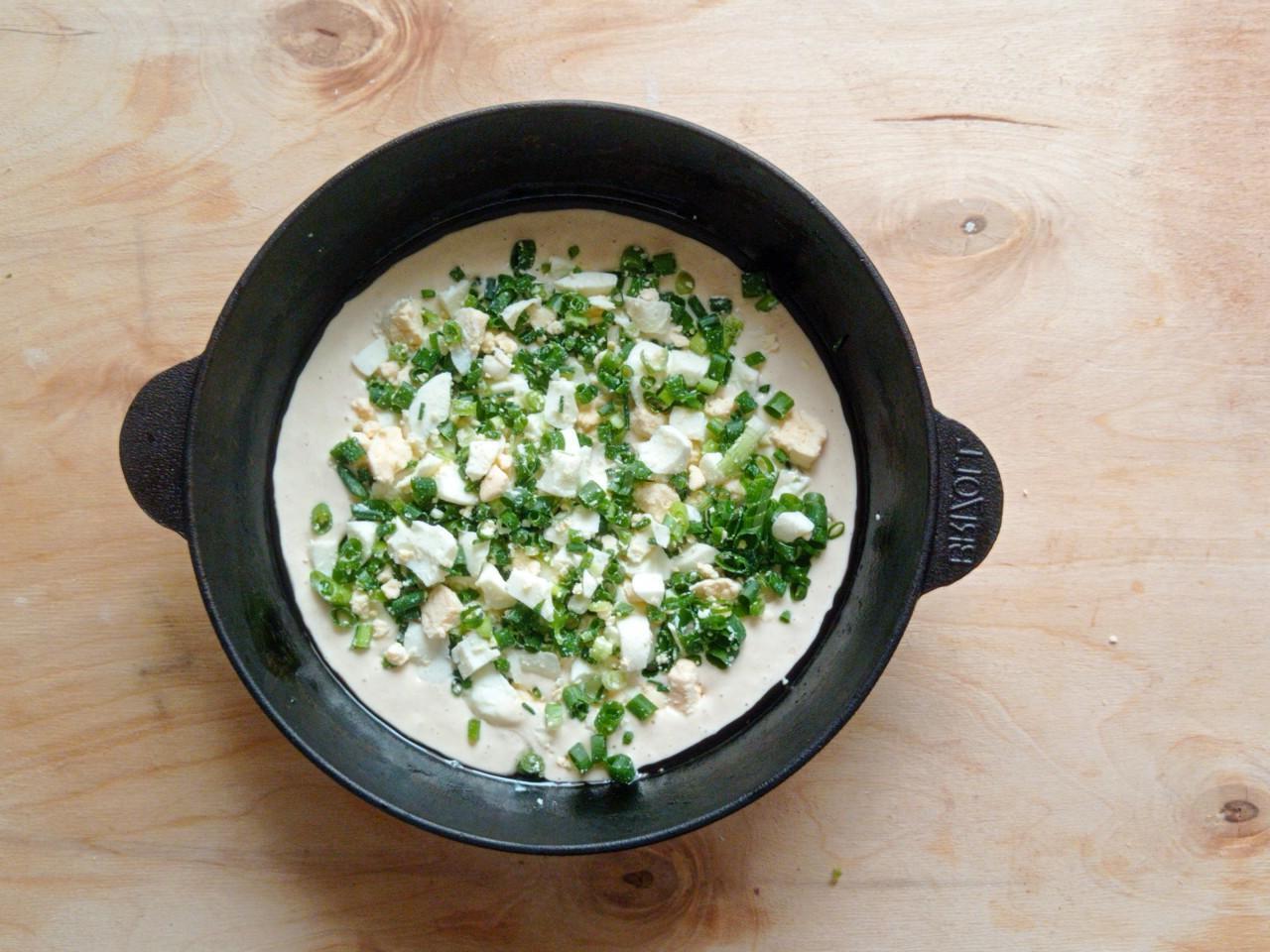 A taste familiar from childhood that will conquer anyone! Jellied pie with egg and onion is a simple pastry with a tasty and healthy filling. The combination of greens and boiled chicken eggs has always been traditionally common in Russian cuisine and is loved by many for its simplicity.