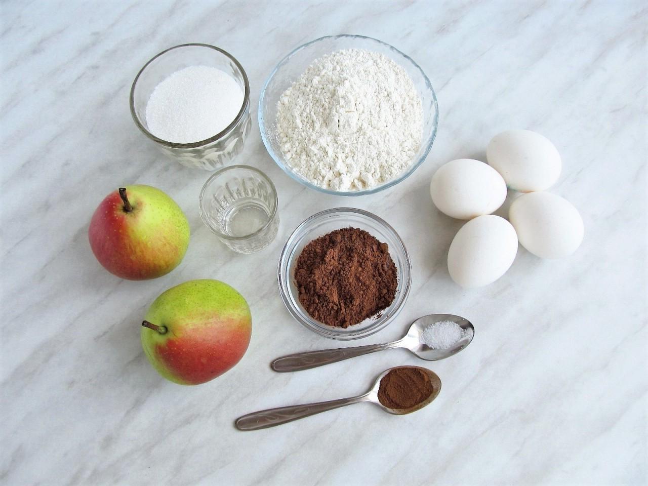 Charlotte recipe for fans of chocolate baking. Nowadays you won’t surprise anyone with a charlotte recipe. The classic version of the pie receives various additions over time. I prepared the dough for this charlotte with the addition of cocoa and aromatic pears. It turned out very chocolatey and juicy!